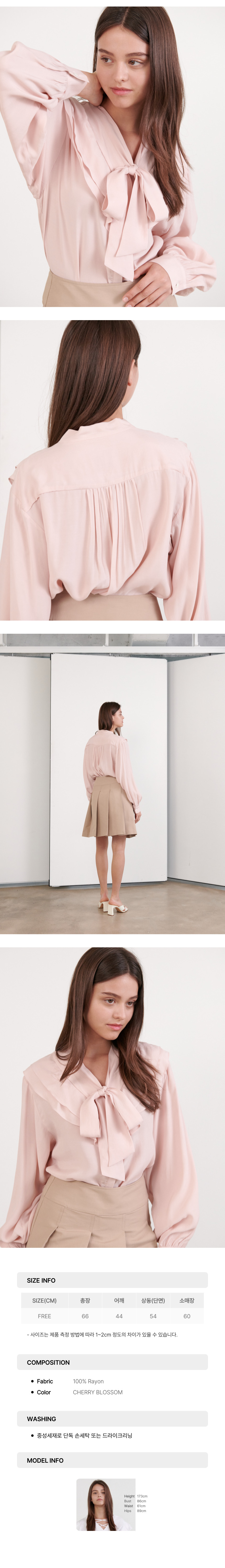 여리여리한 쉬폰소재에 잔잔한 도트 조직감이 돋보이는 블라우스예요.