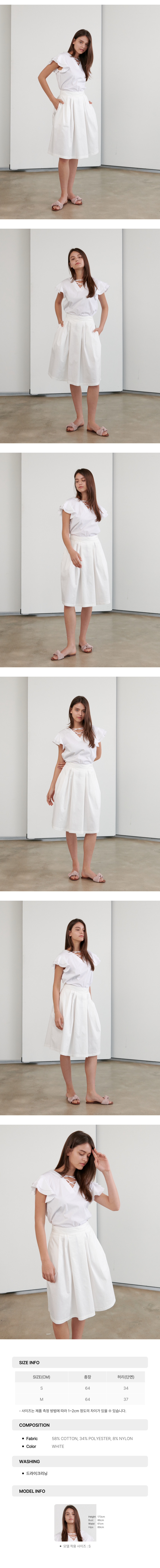 스트레치가 있는 코튼/레이온 소재의 스커트로 앞 뒤 라인에 절개 디자인을하여 날씬해보입니다.