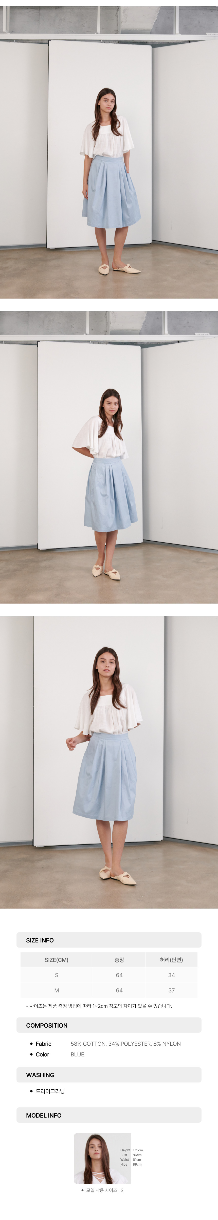 코튼/나일론 혼방소재의 A라인 주름 스커트예요.