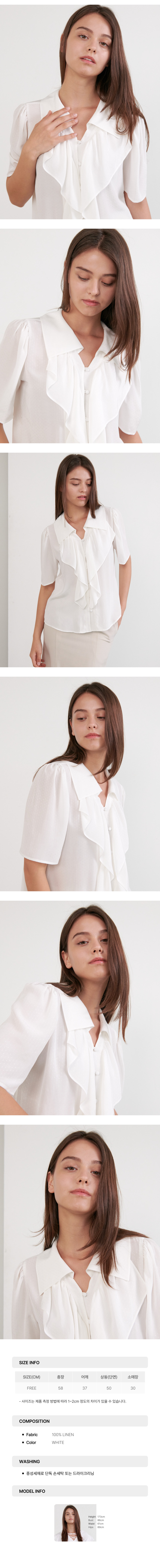 부드러운 촉감의 린넨 소재는 내츄럴한 룩을 연출해주며 가슴과 어깨부분의 러플 디테일이 큐트한 느낌을 줍니다.