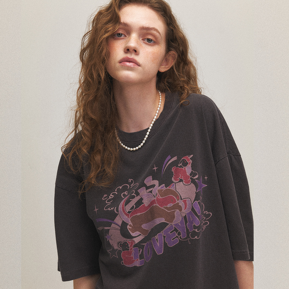 가벼운 소재로 그래픽이 특징인 스트릿 캐쥬얼 반팔티셔츠
