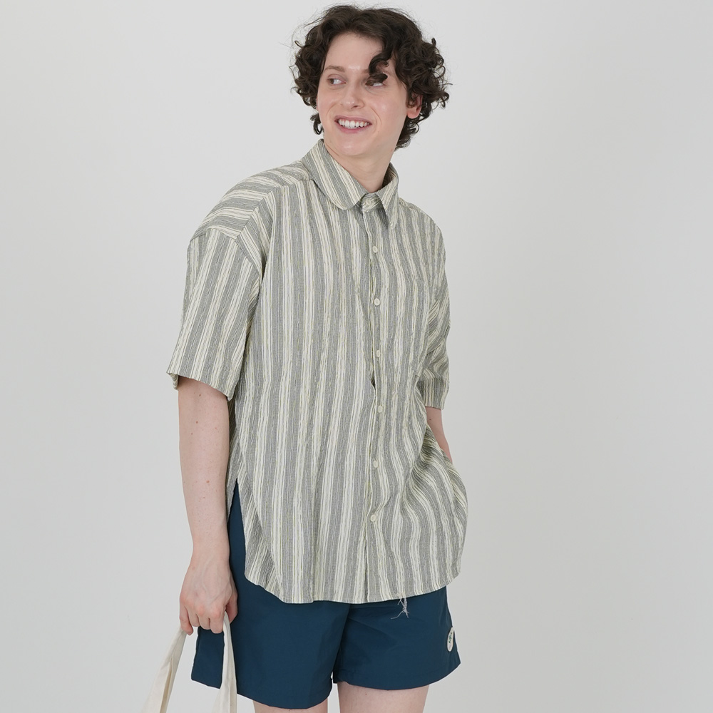 SP 시티보이 린넨 포켓 오버핏 반팔 셔츠-베이지