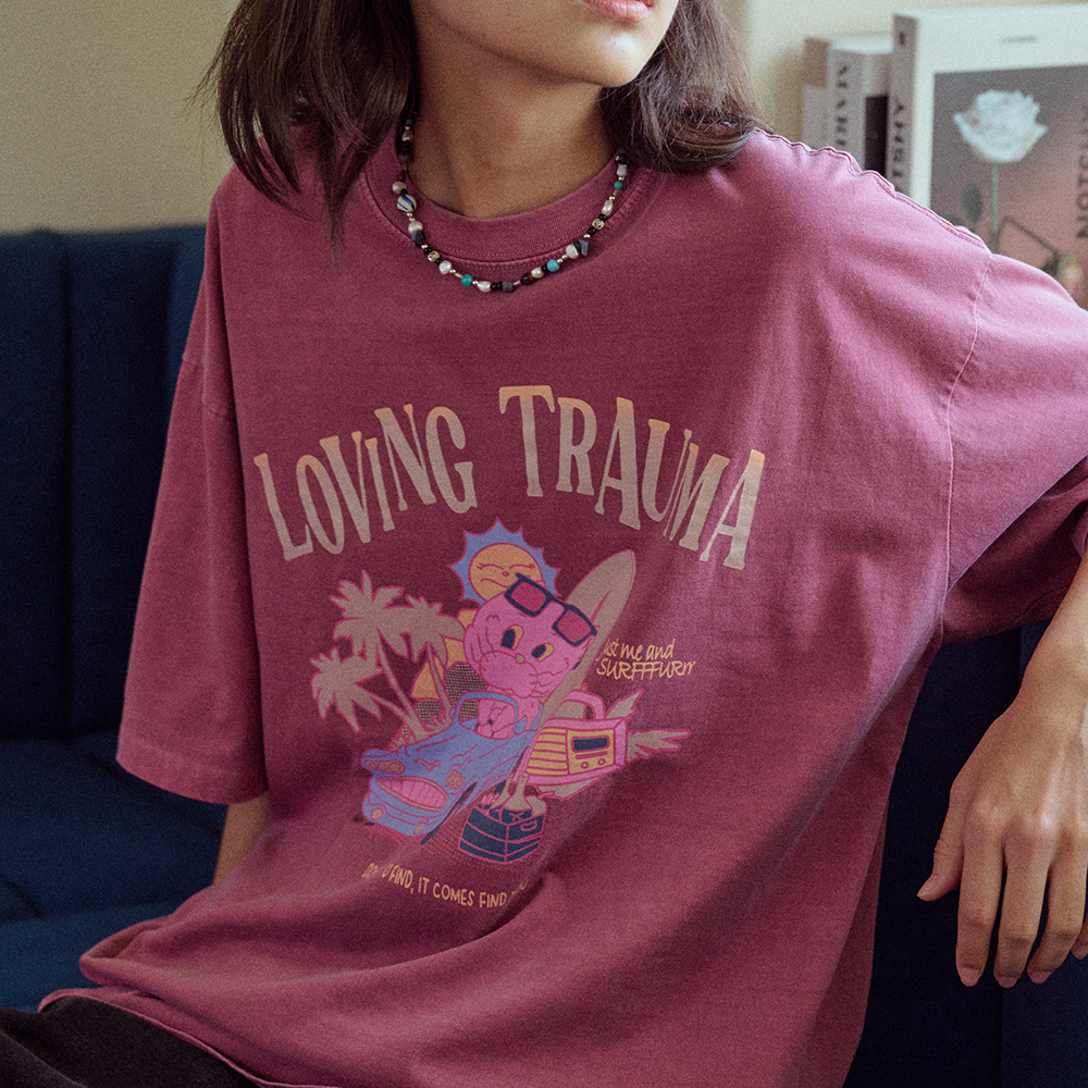 아트웍이 피그먼트 워싱되며 가공 처리하여 유니크한 무드를 연출했습니다.