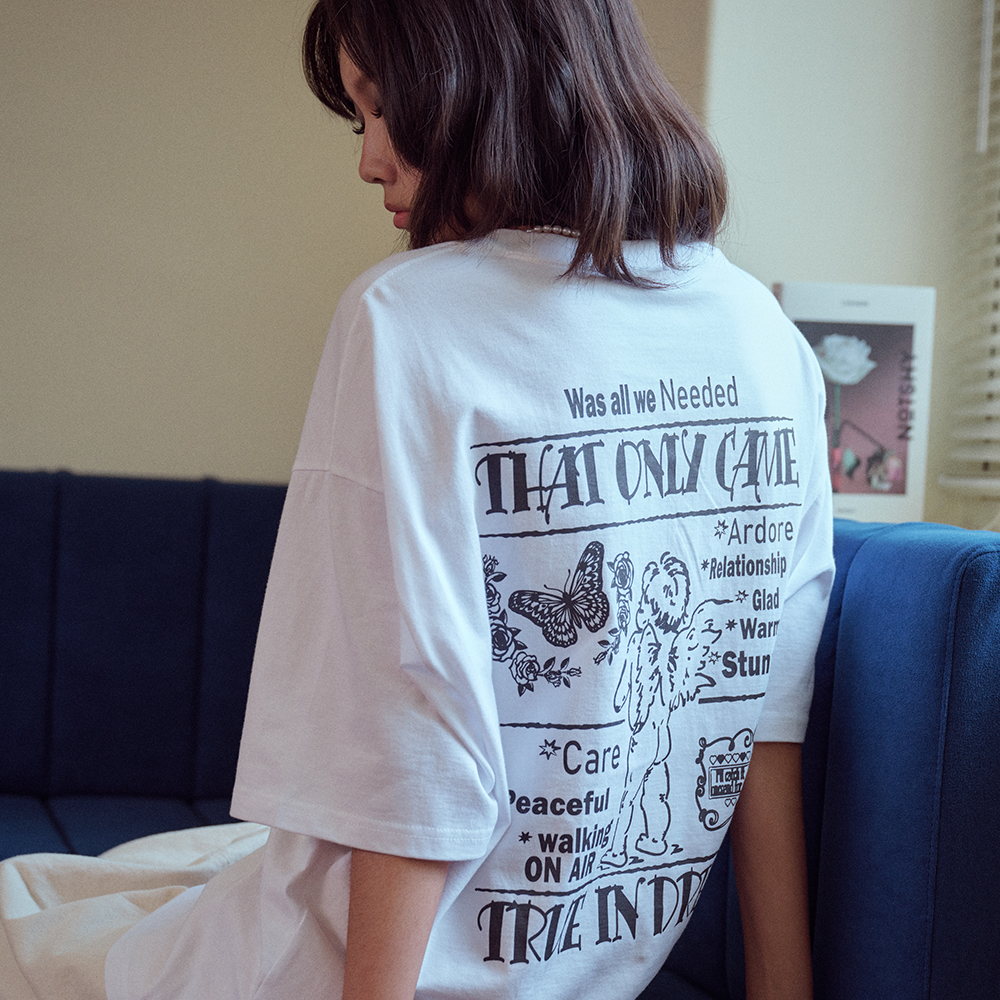 가벼운 소재로 그래픽이 특징인 스트릿 캐쥬얼 반팔티셔츠