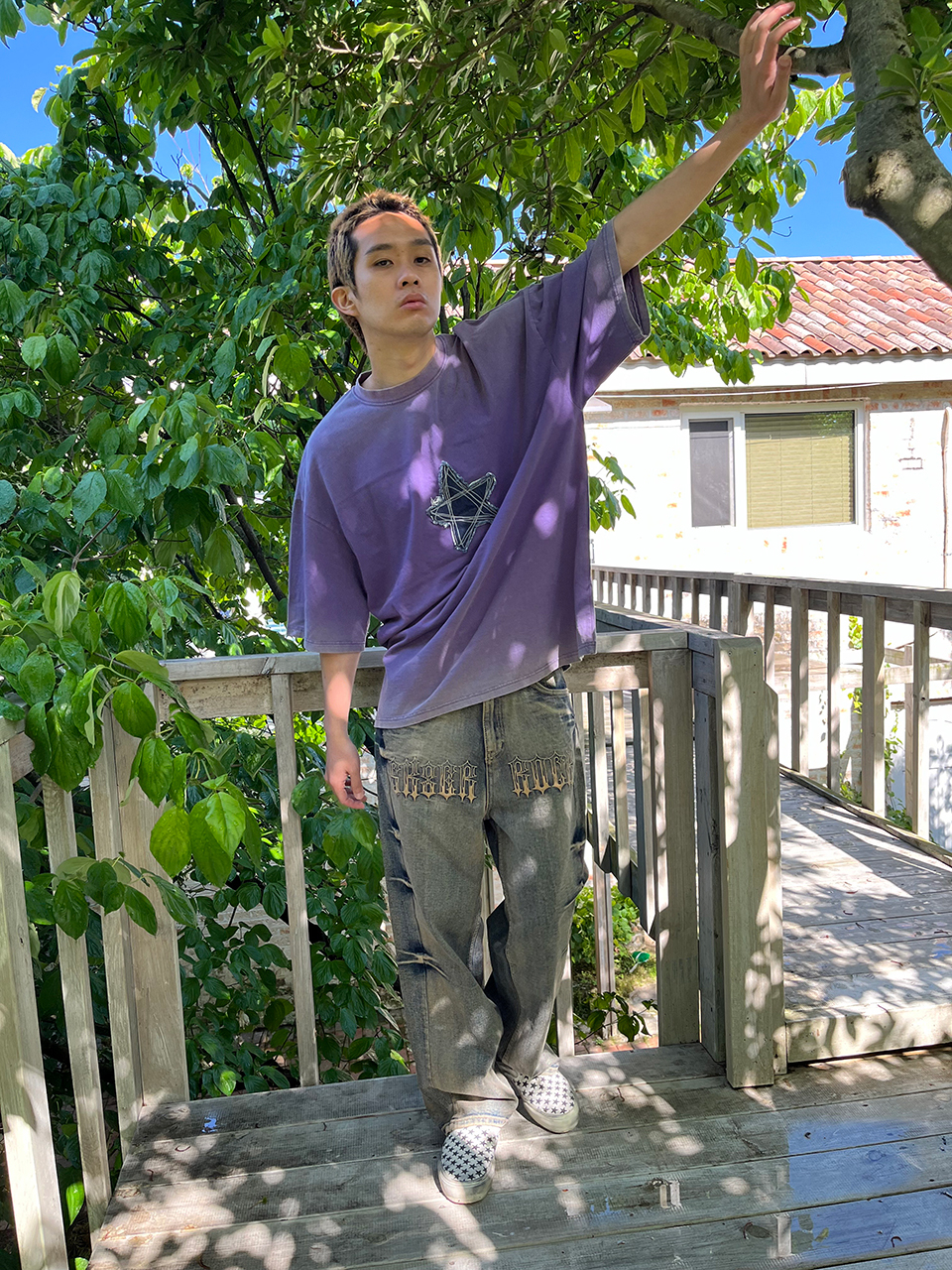 가벼운 소재로 그래픽이 특징인 스트릿 캐쥬얼 반팔티셔츠