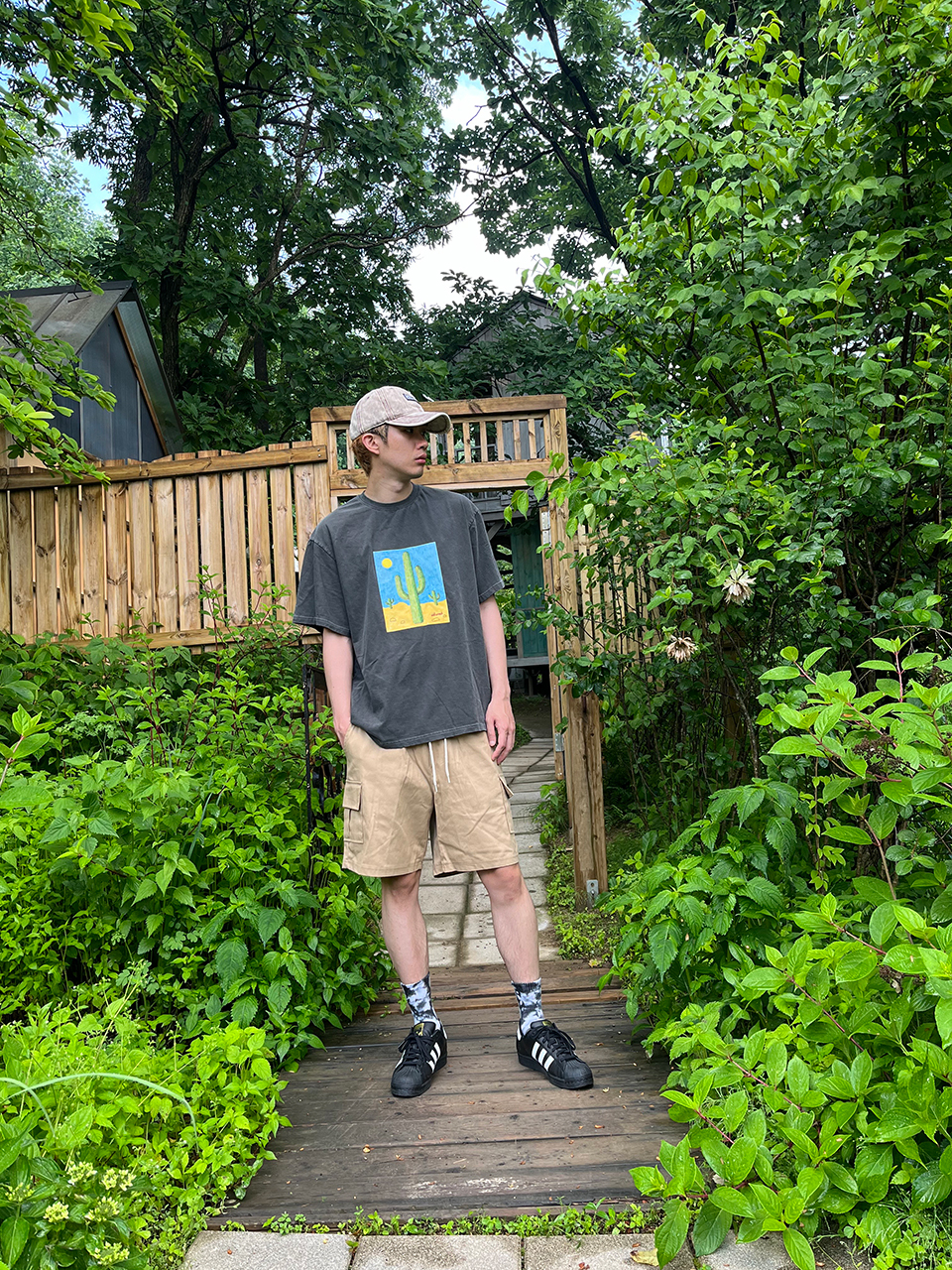 REVERSE 서클 로고 하프 팬츠 (차콜)