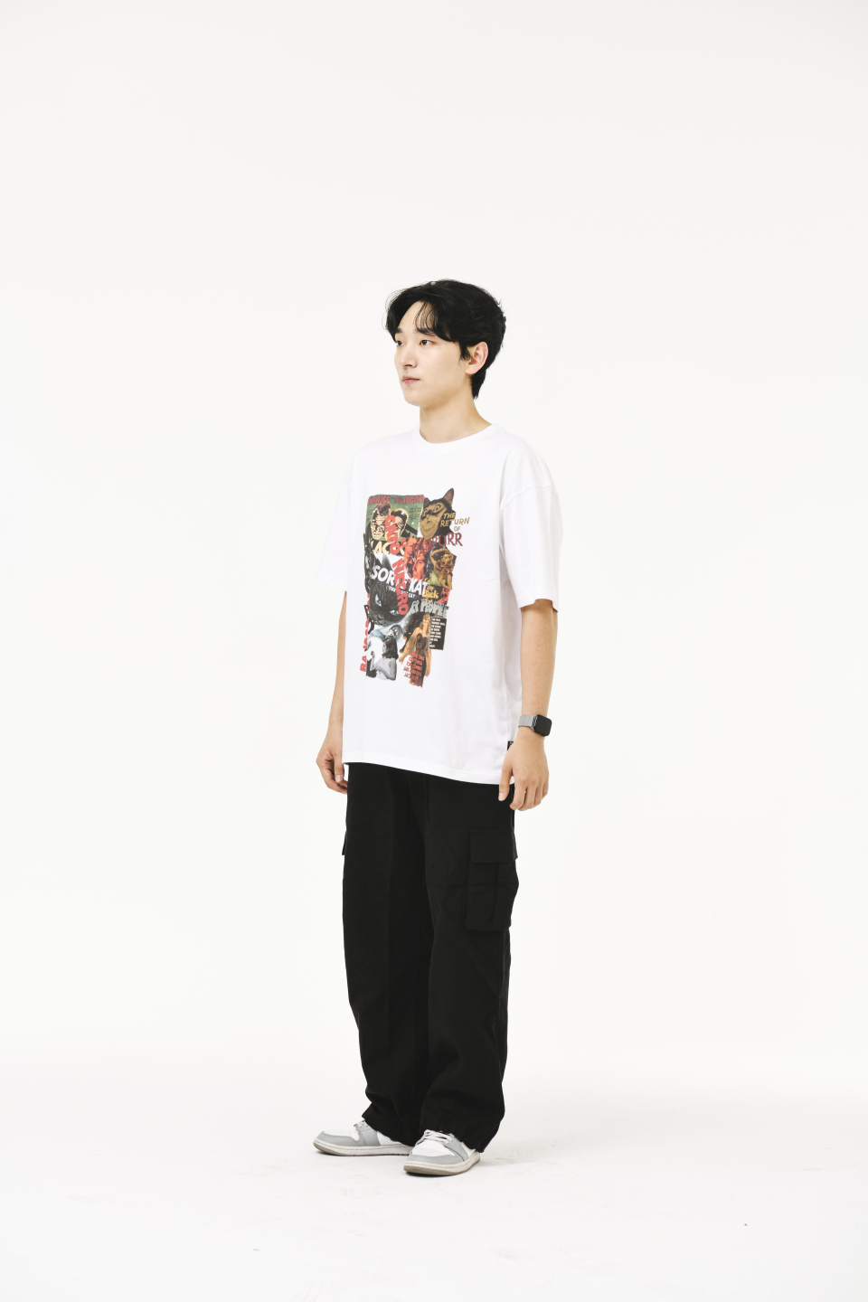 가벼운 소재로 그래픽이 특징인 스트릿 캐쥬얼 반팔티셔츠