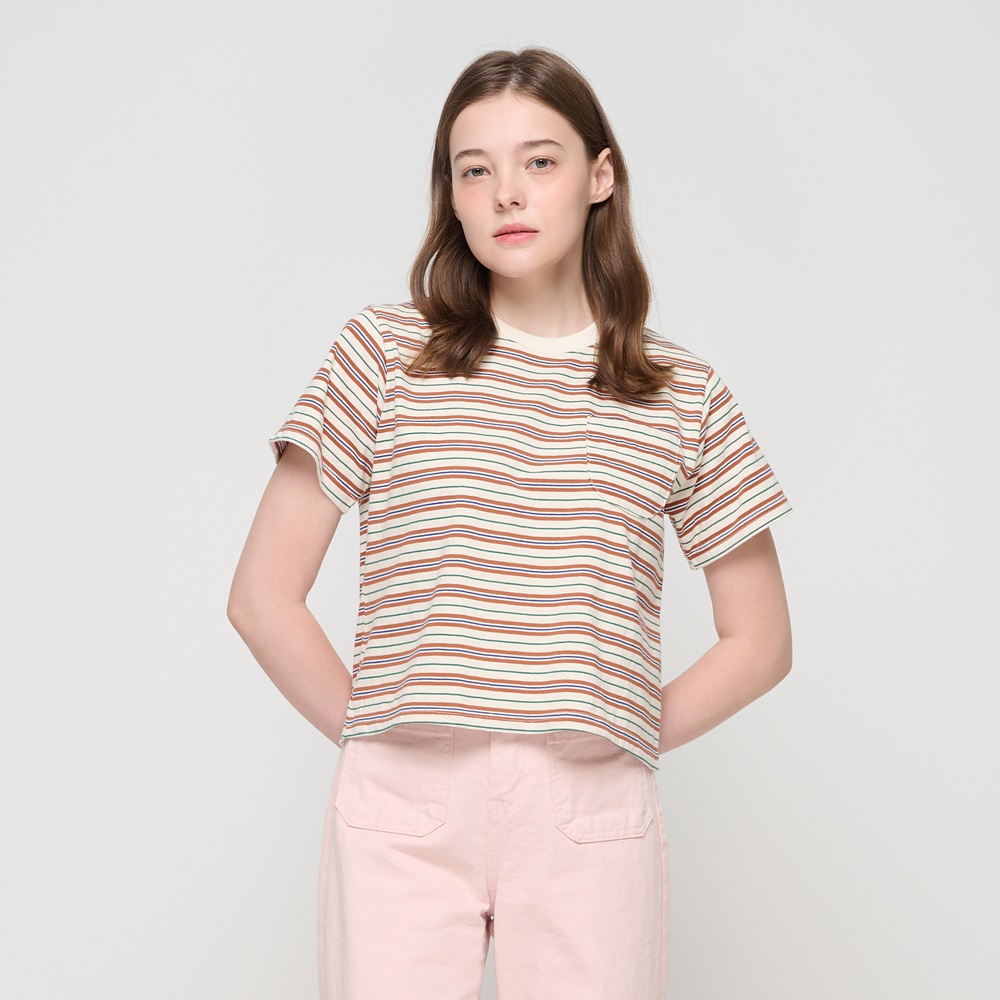 보트넥 반팔티로 여유로운 목선이 특징인 제품입니다.