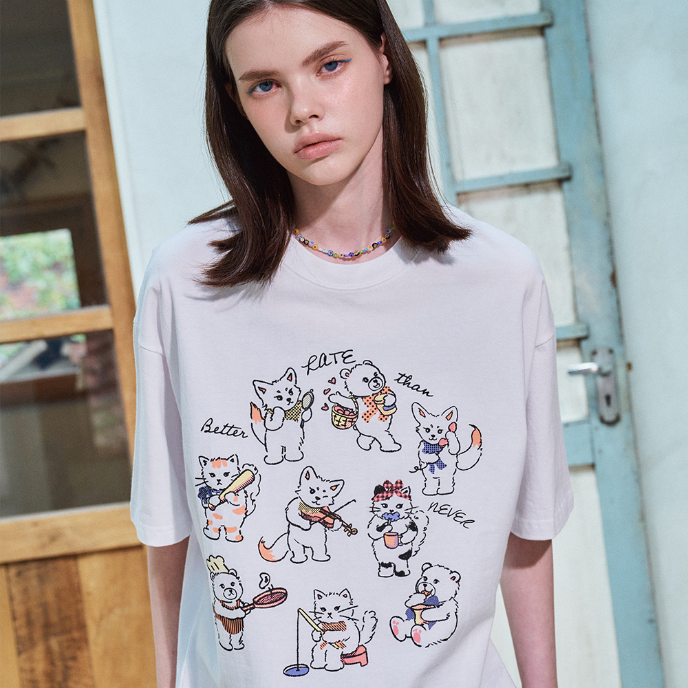 Wild 로큰롤 냥이 피그먼트 오버핏 반팔 티셔츠_7 COL