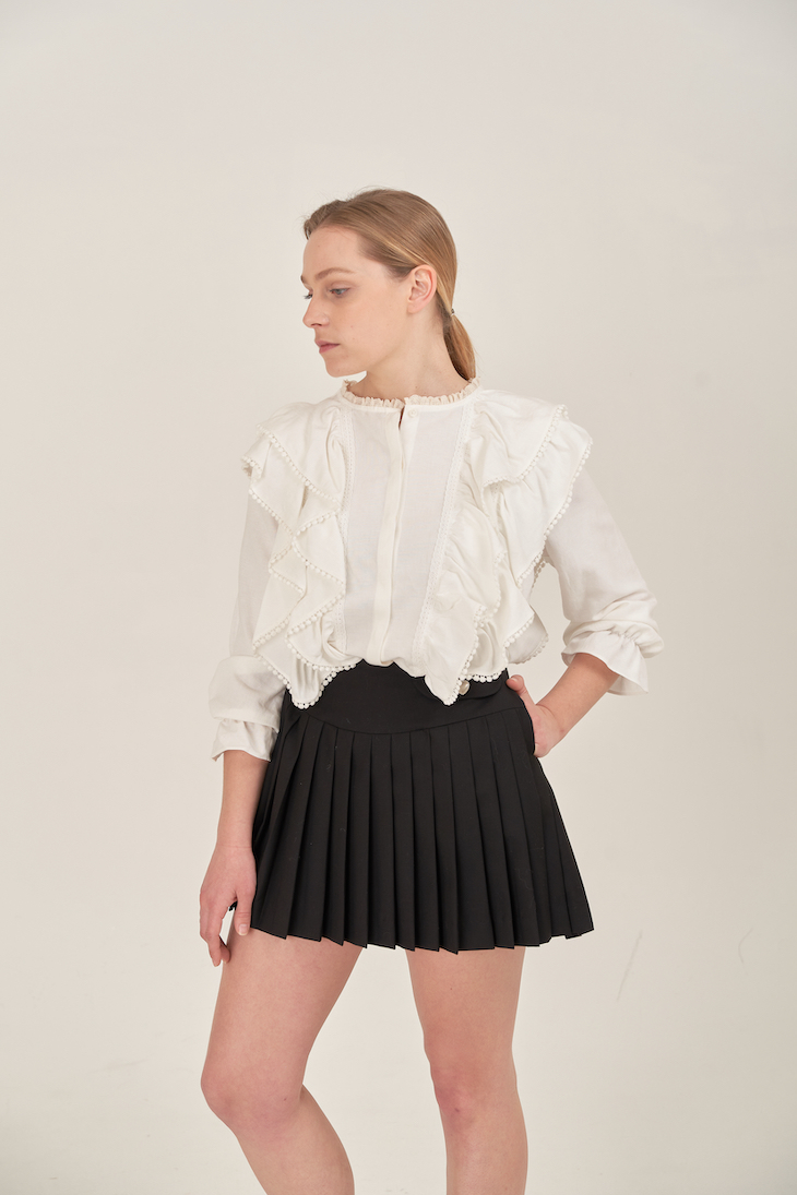 은은하게 비치는 쉬폰 원단으로 제작된 레이어드 랩스커트입니다.