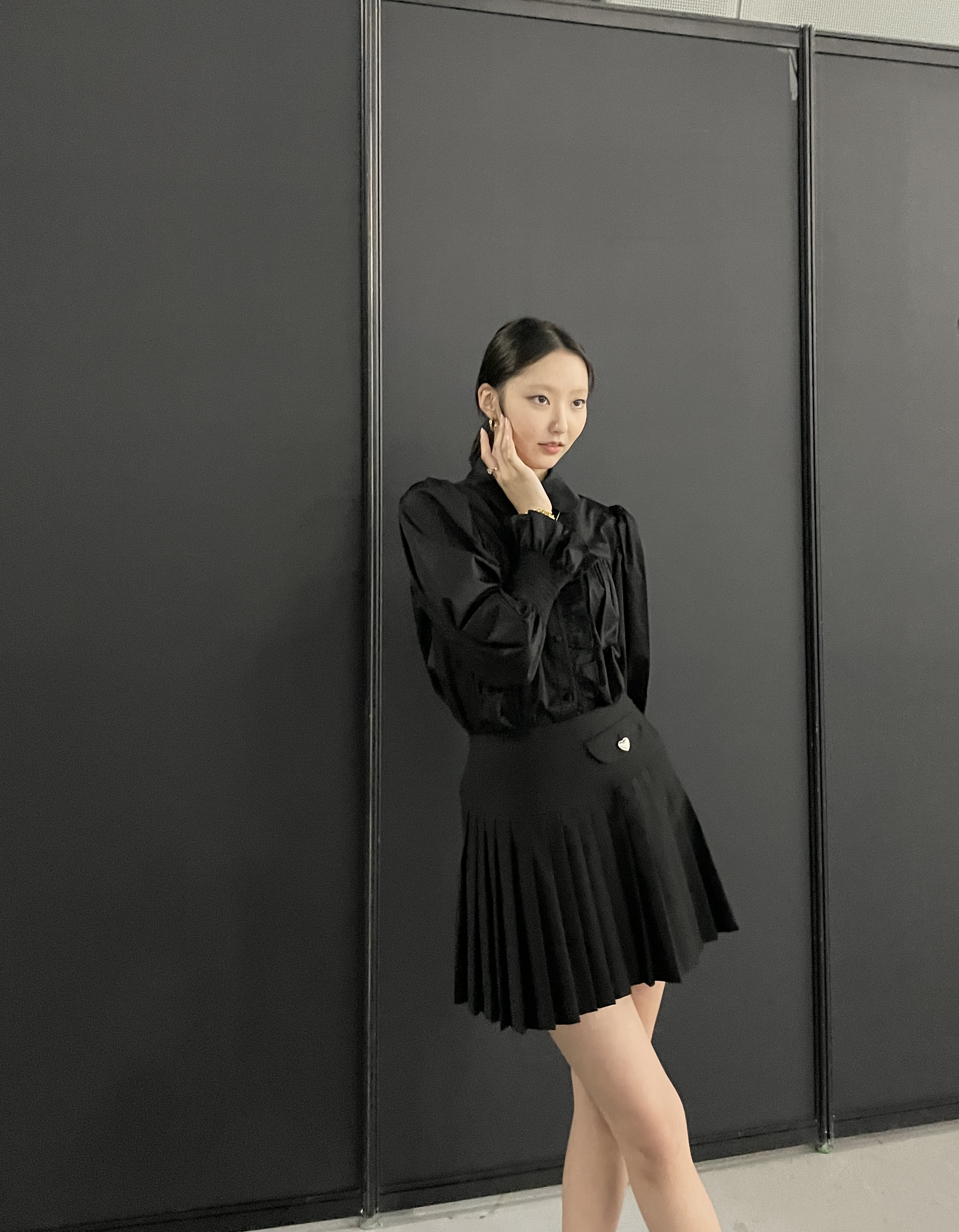 코튼/나일론 혼방소재의 A라인 주름 스커트예요.