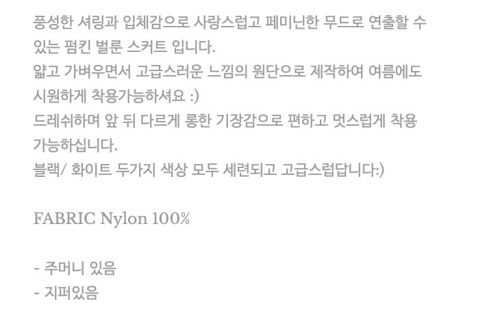 코튼/나일론 혼방소재의 플리츠 풀스커트예요.