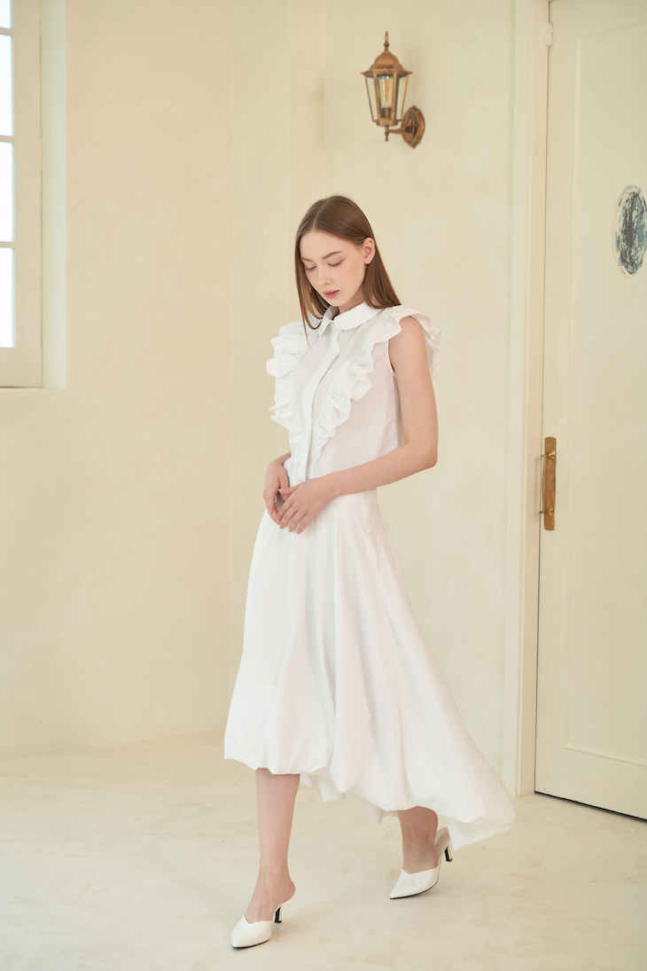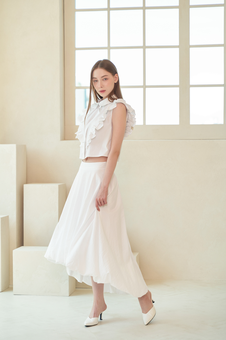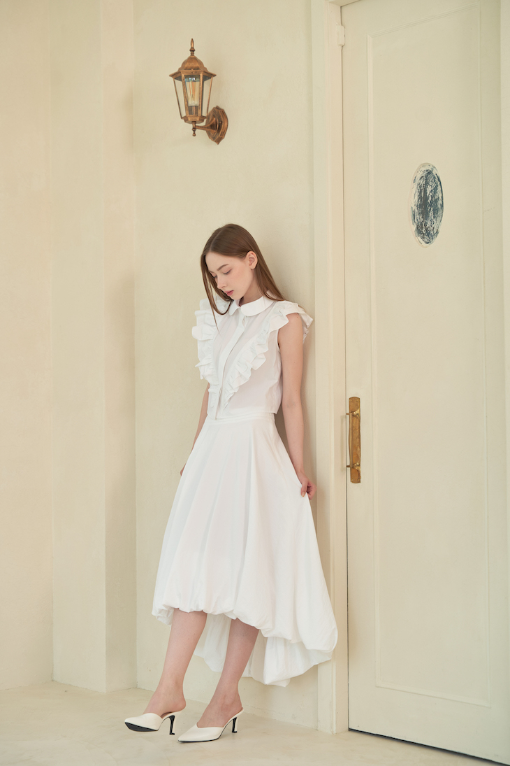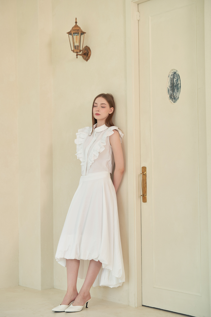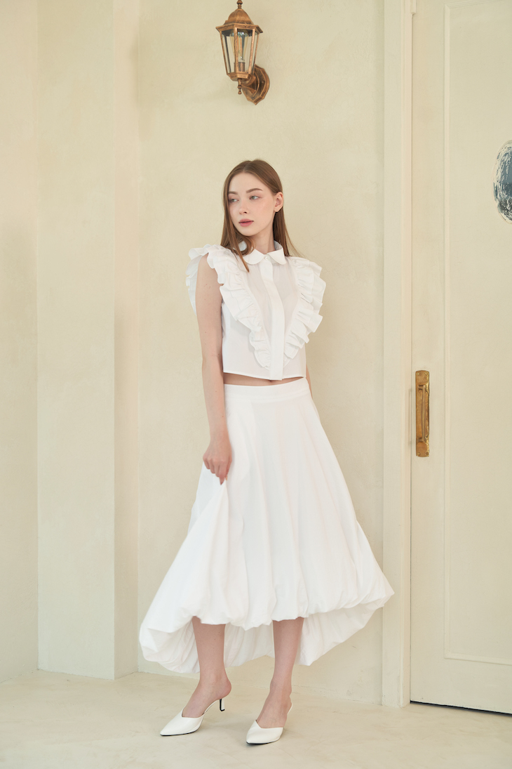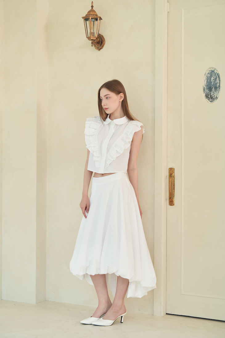 프릴 펀칭 자수 미니 스커트 (화이트)