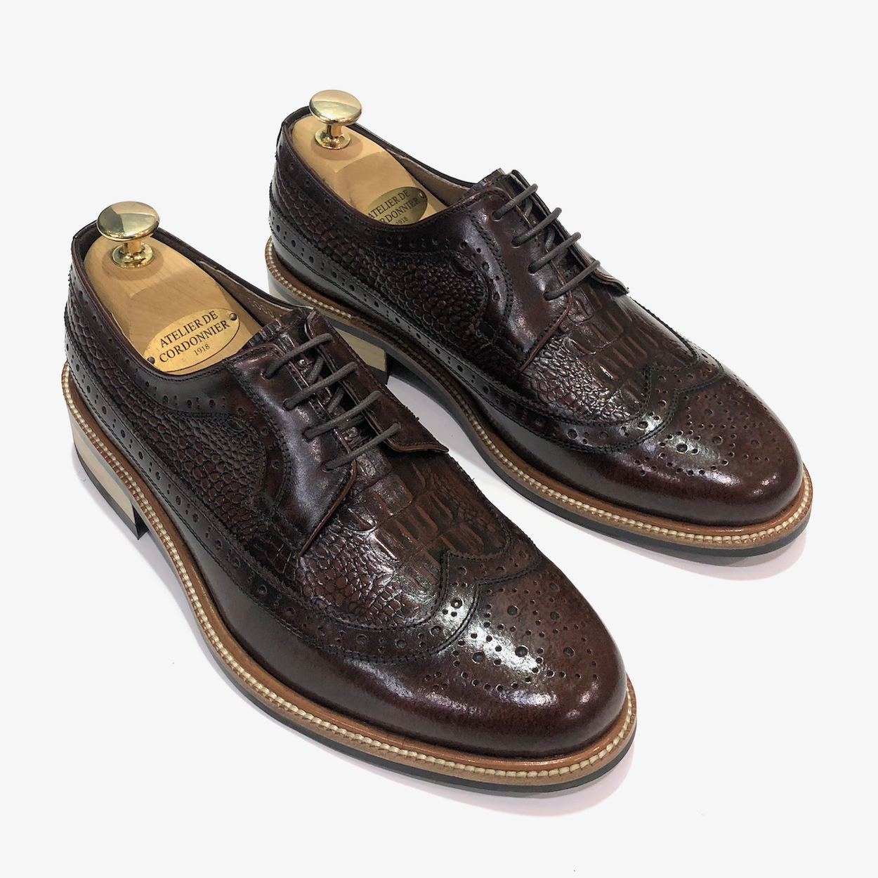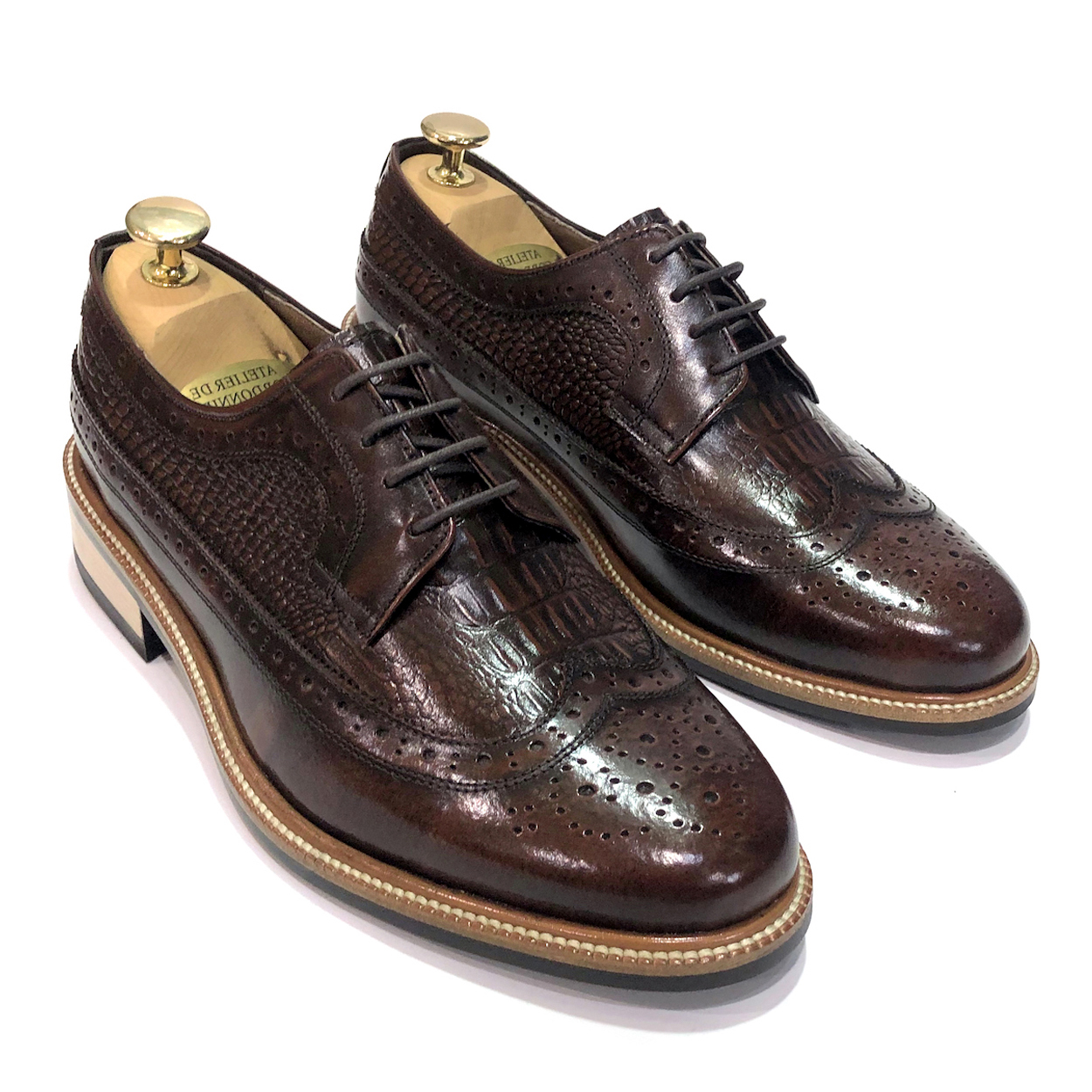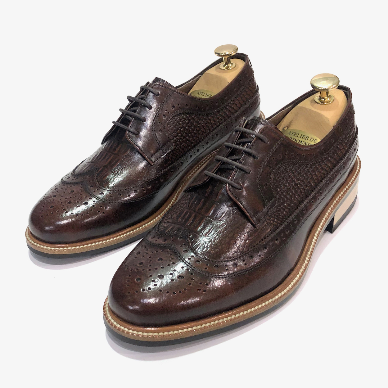 : 정교한 윙팁 브로깅 디테일로 클래식하고 우아한 디자인을 완성합니다.