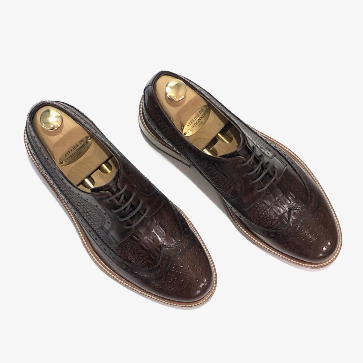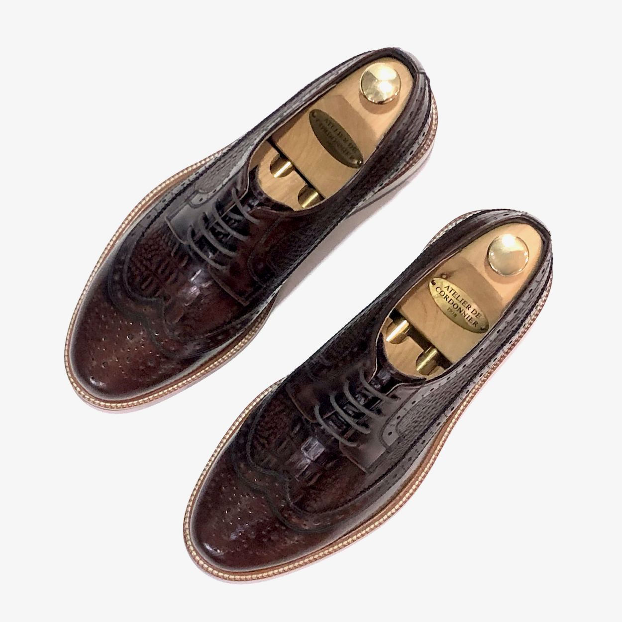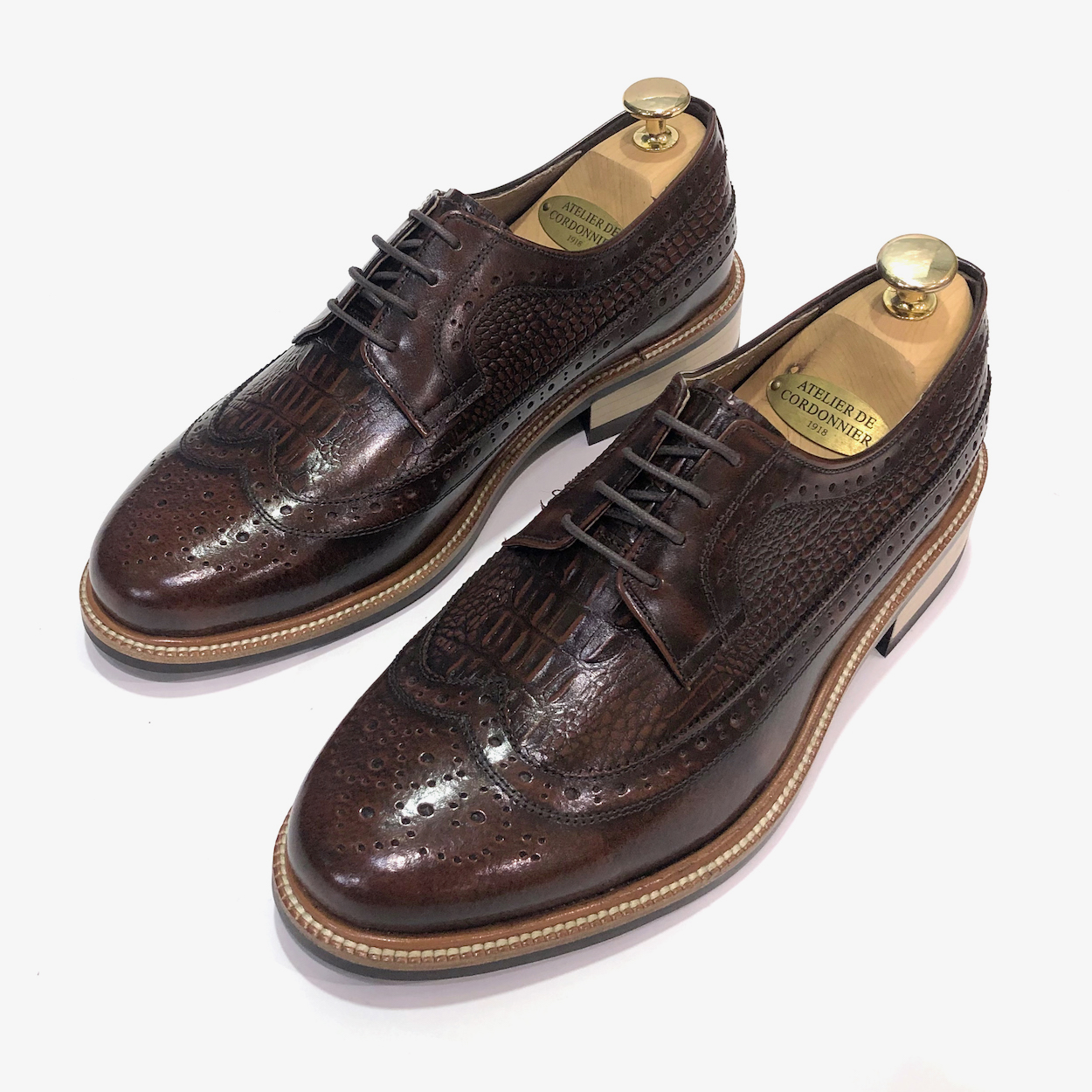 : 정교한 윙팁 브로깅 디테일로 클래식하고 우아한 디자인을 완성합니다.