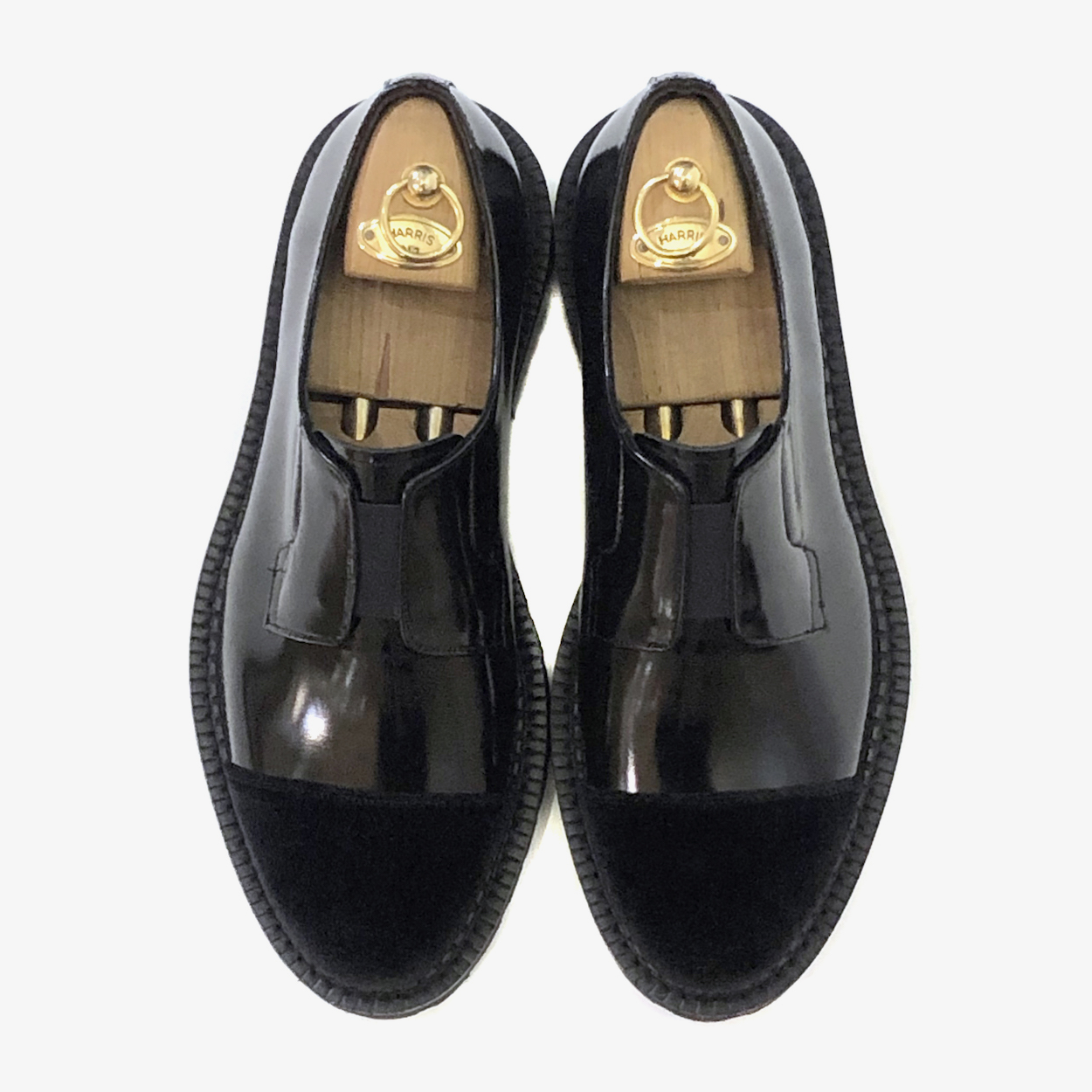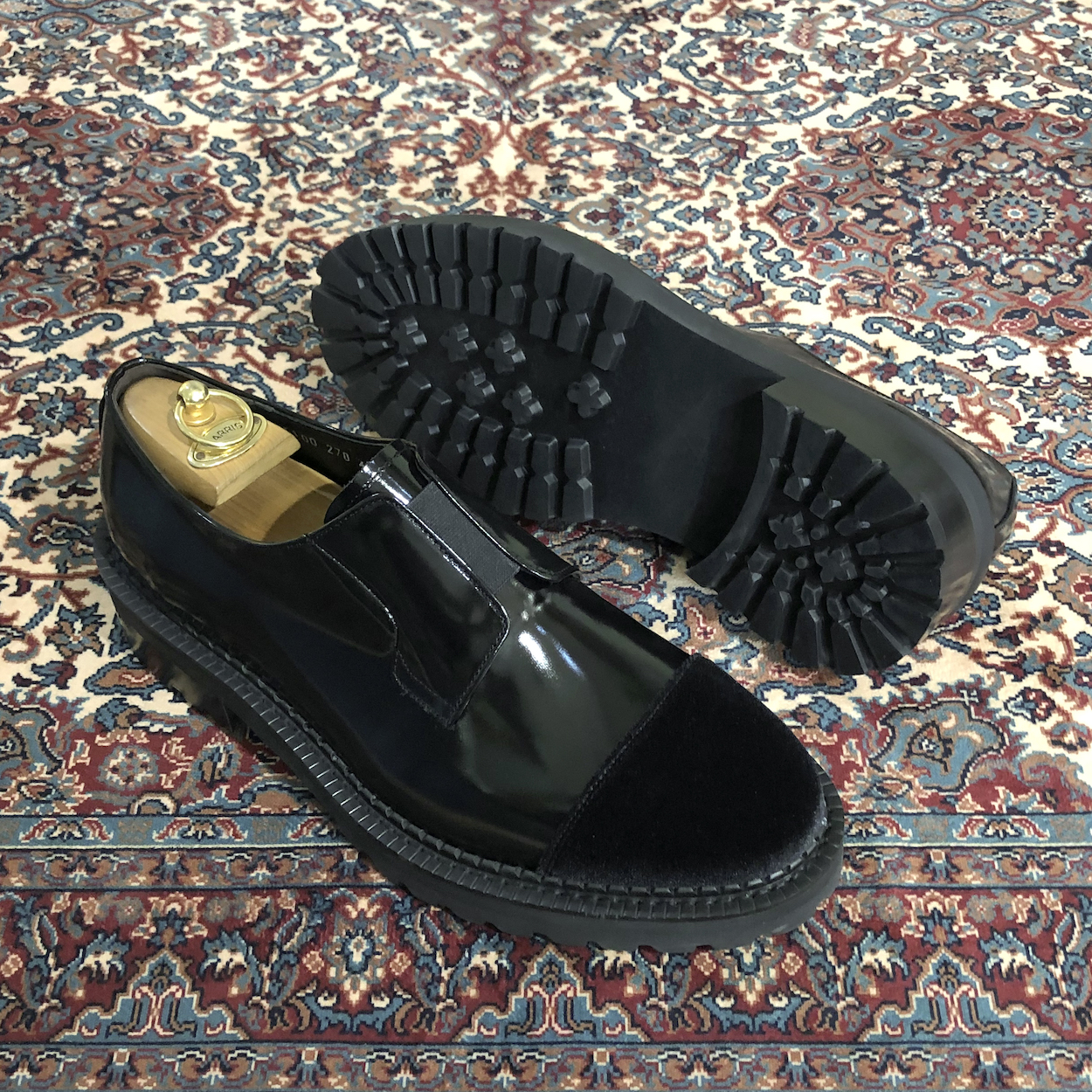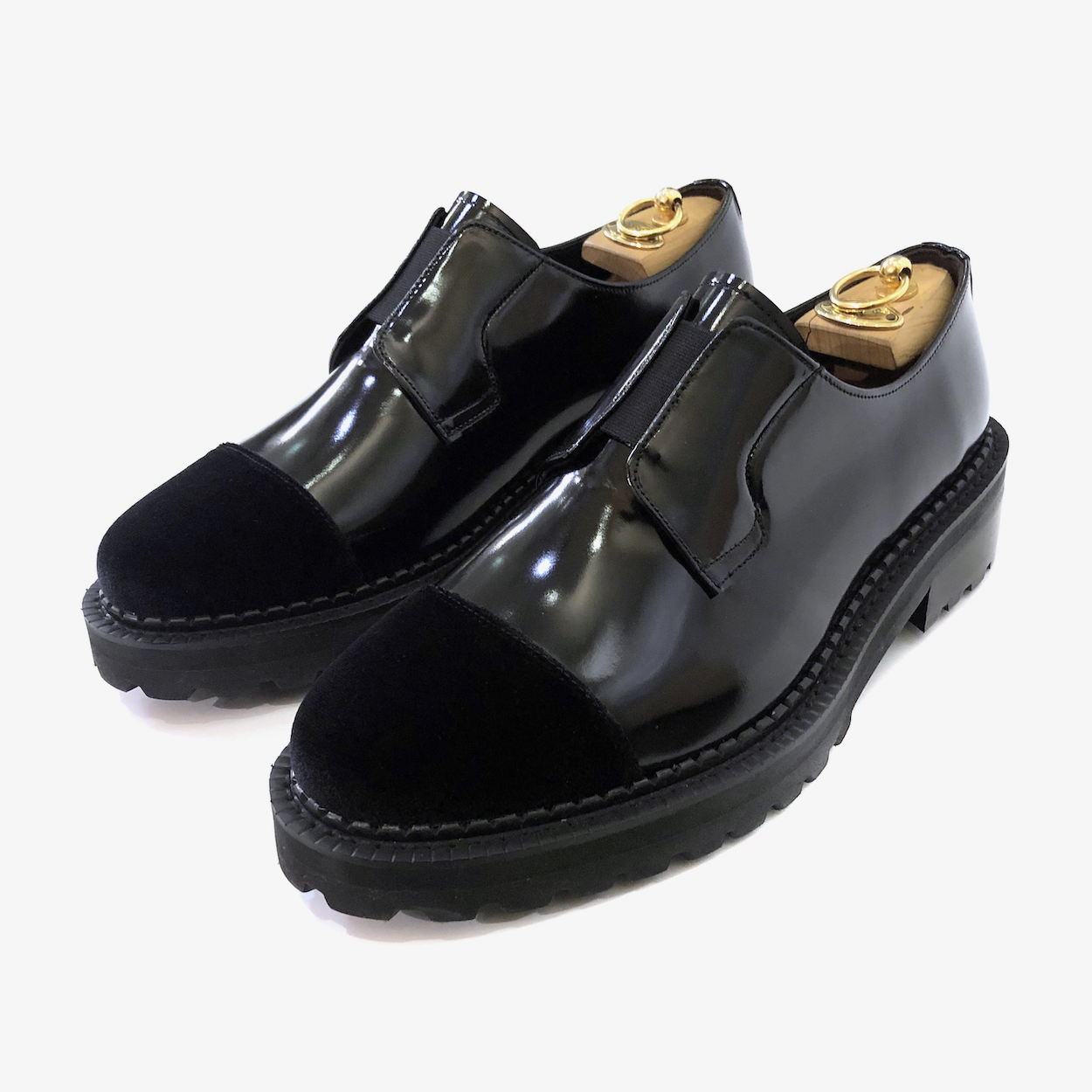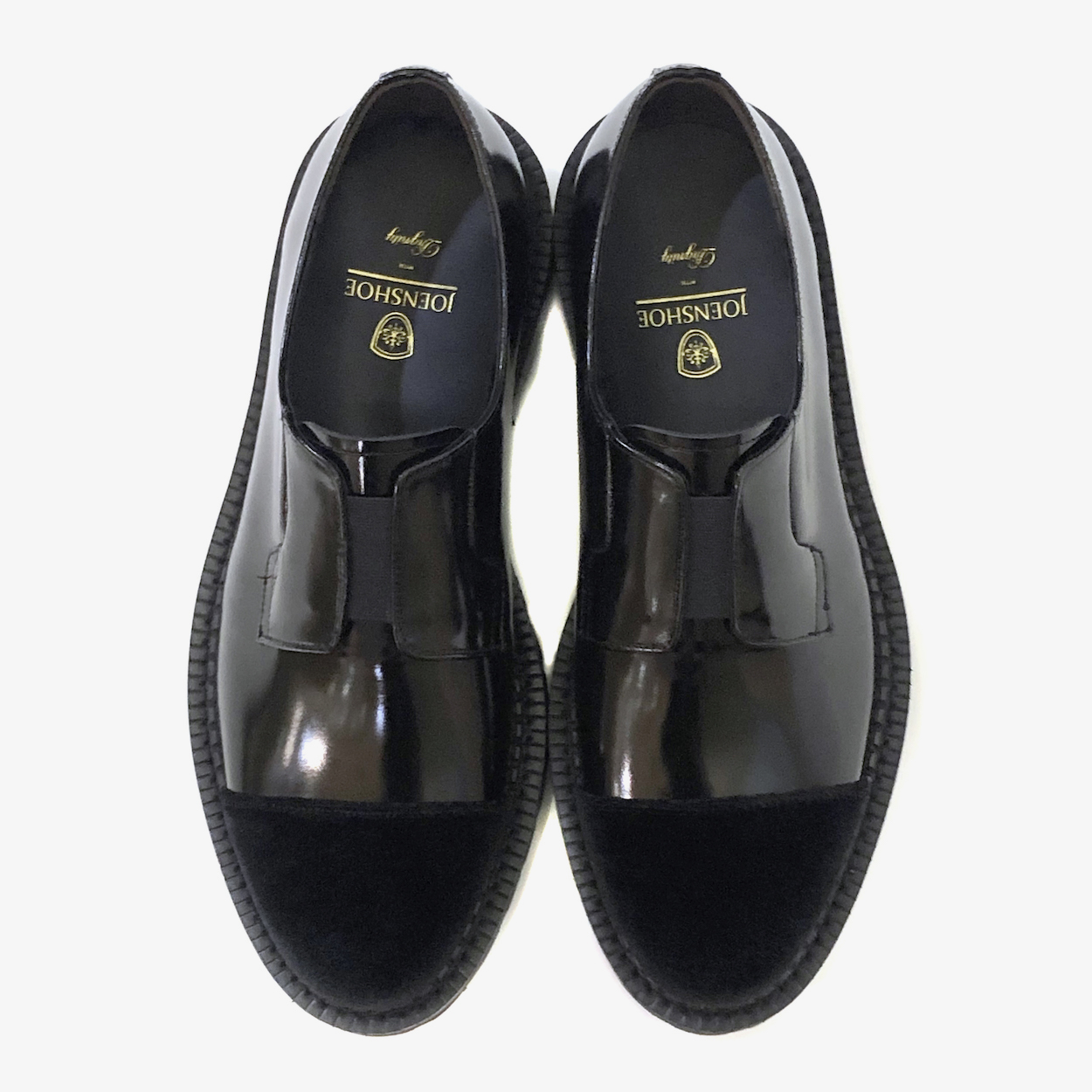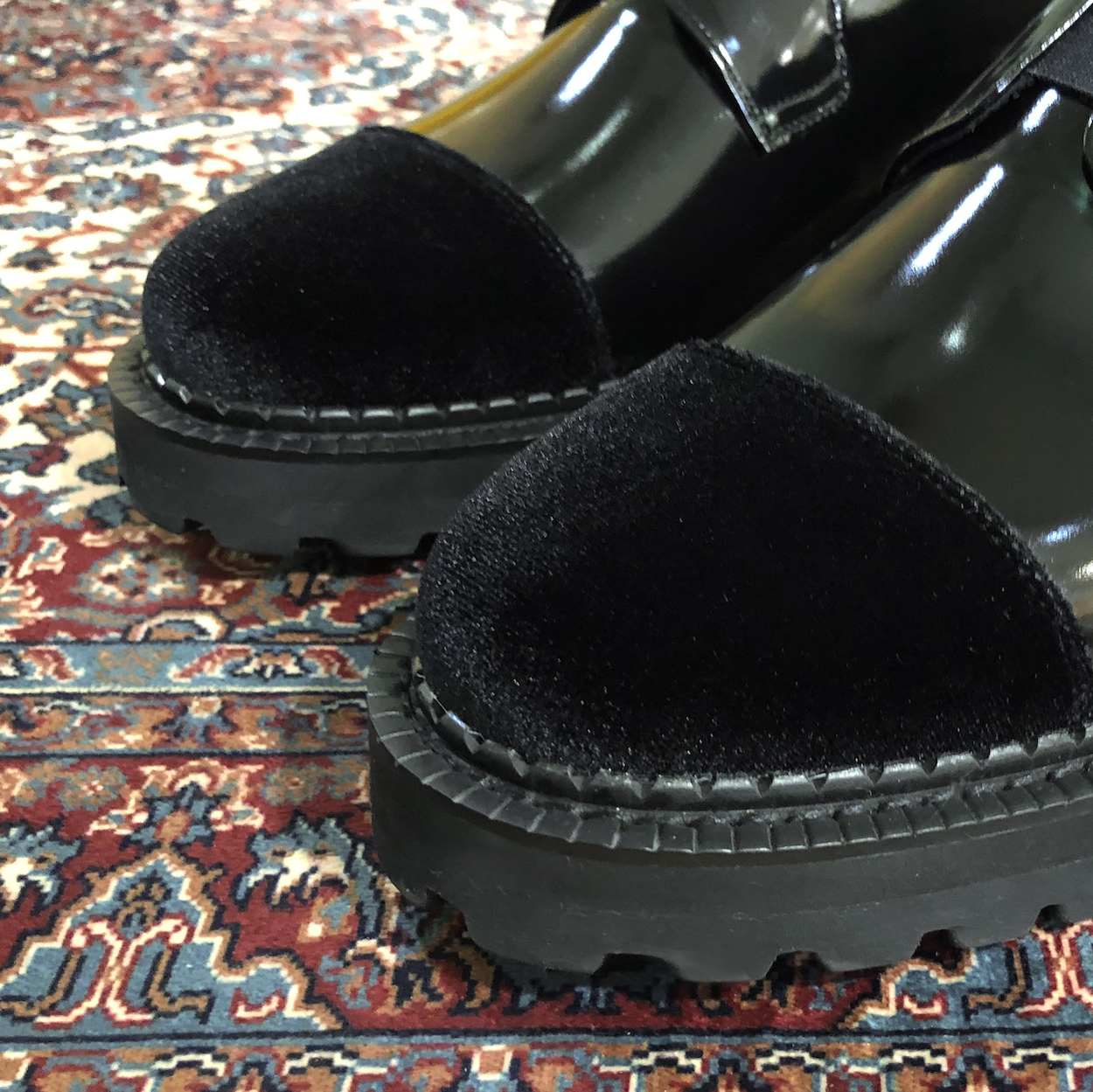 : 벨벳 원단으로 제작된 앞코 부분이 고급스럽고 세련된 느낌을 더합니다.