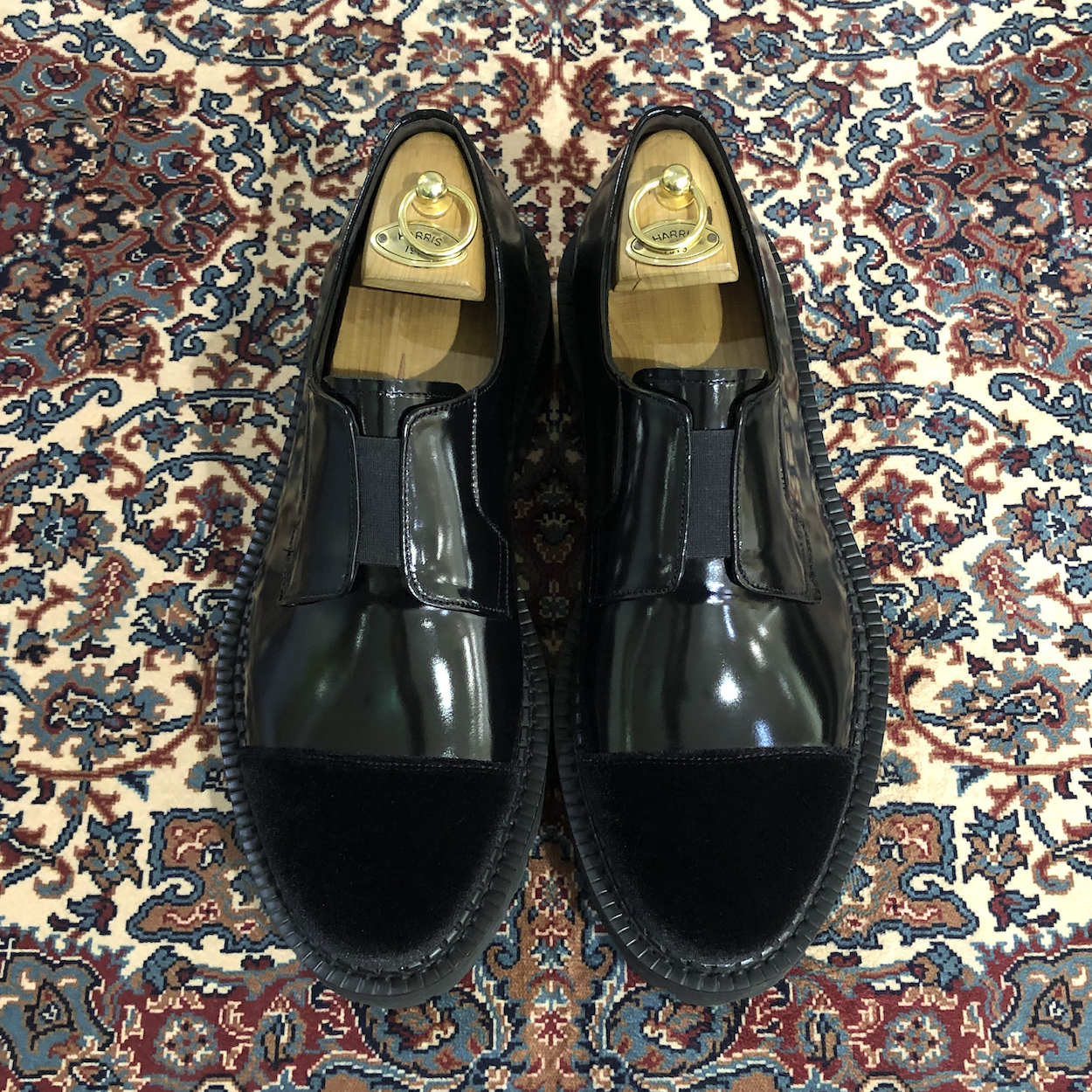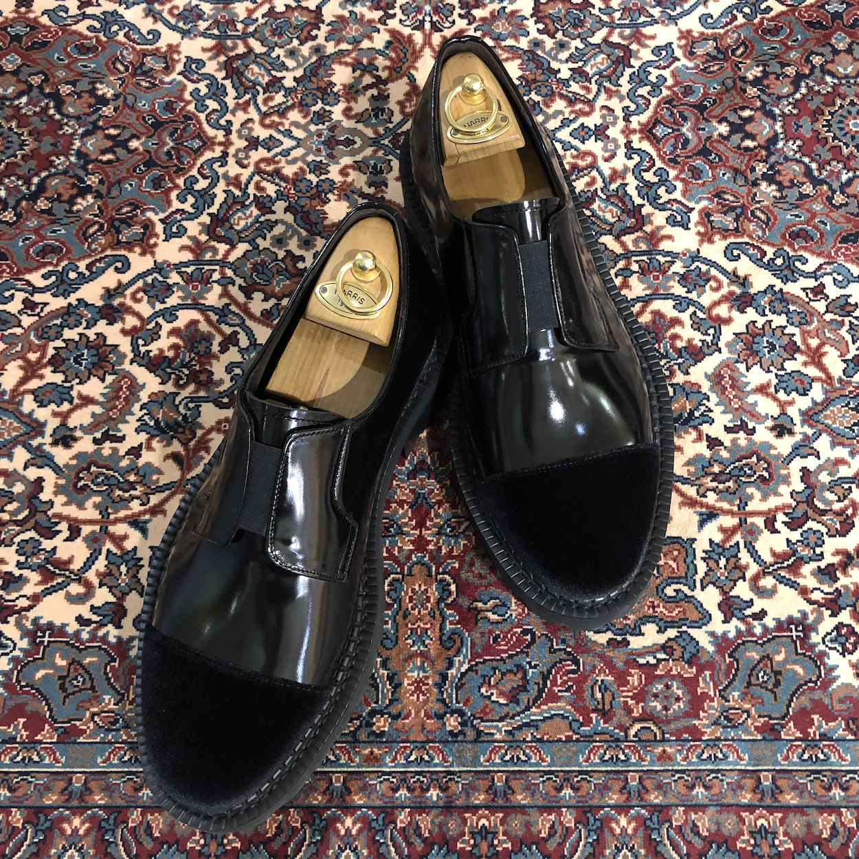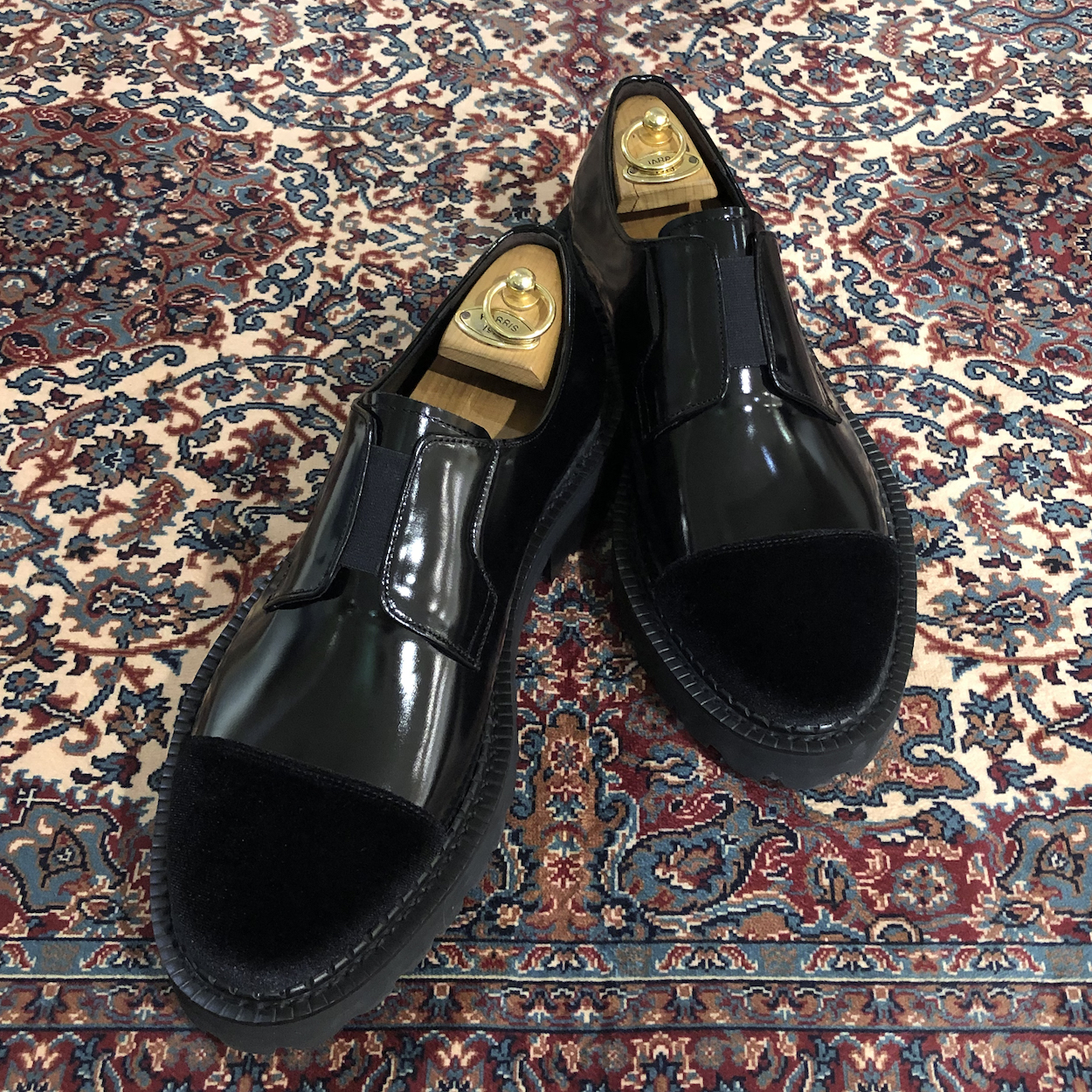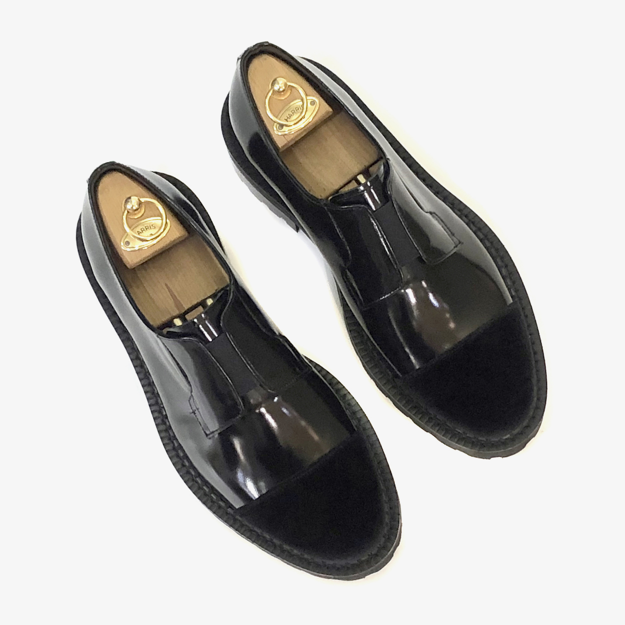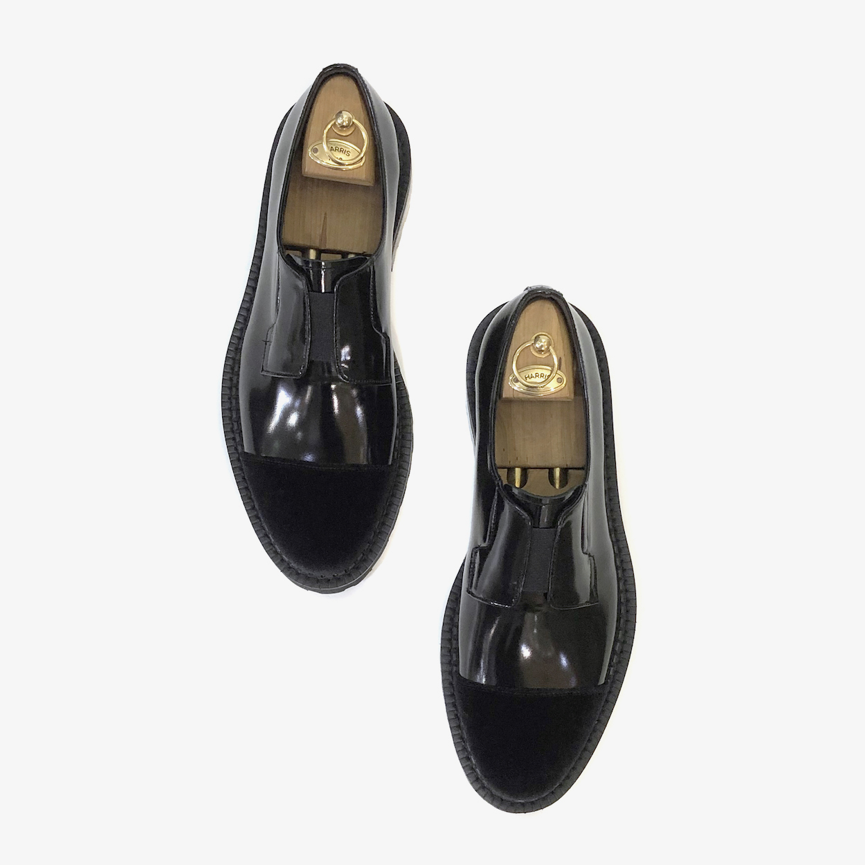 : 벨벳 원단으로 제작된 앞코 부분이 고급스럽고 세련된 느낌을 더합니다.