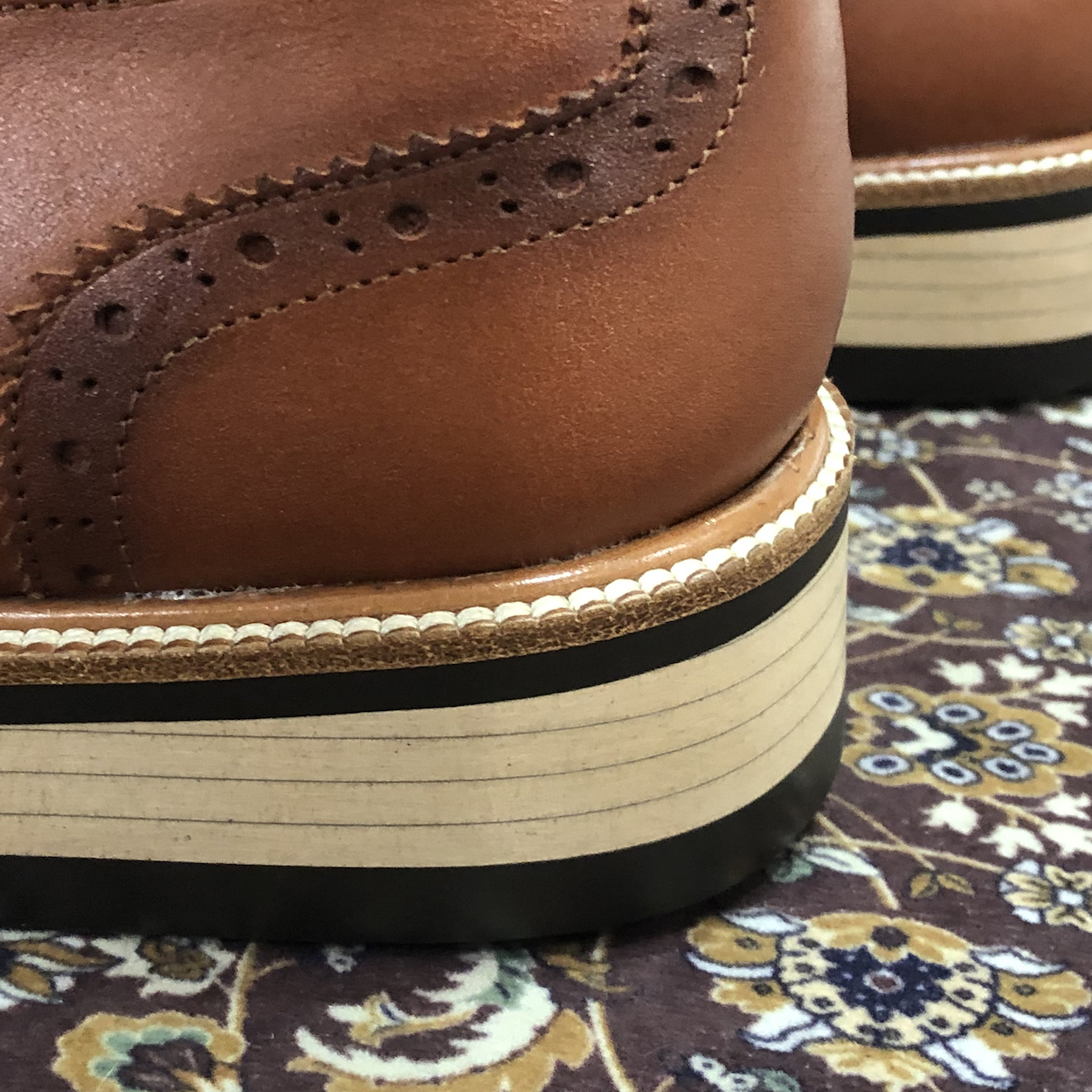 : 베이지 컬러의 아웃솔이 세련된 느낌을 주며 다양한 스타일에 잘 어울립니다.