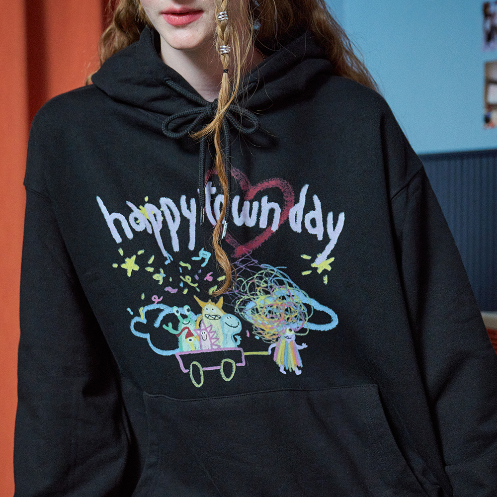 빌리지 플라워 피그먼트 후드티 스모크블랙