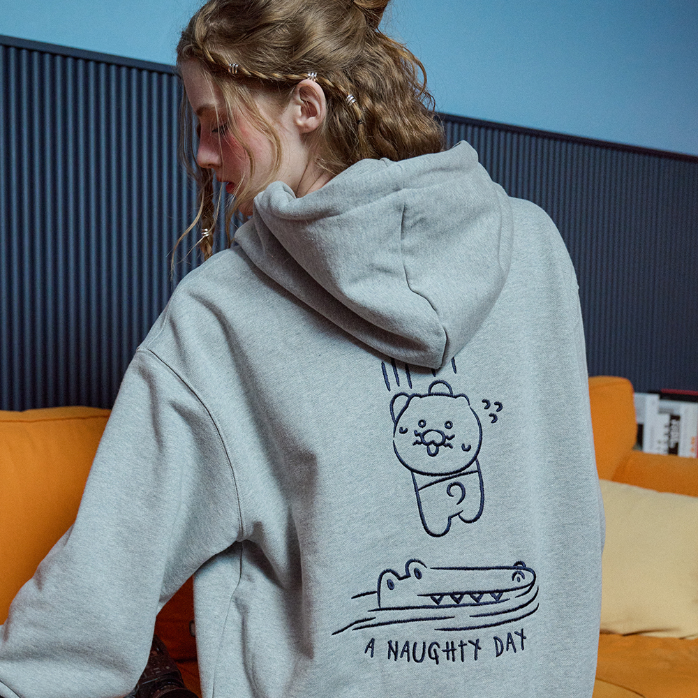 반다나덕 자수 후드티 그레이