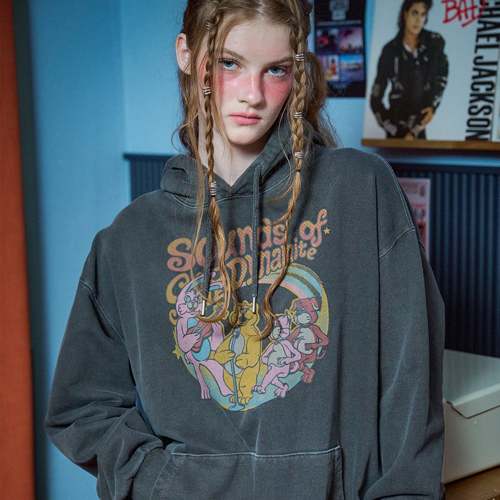 STAR CAT 오버핏 후드 티셔츠[메란지]