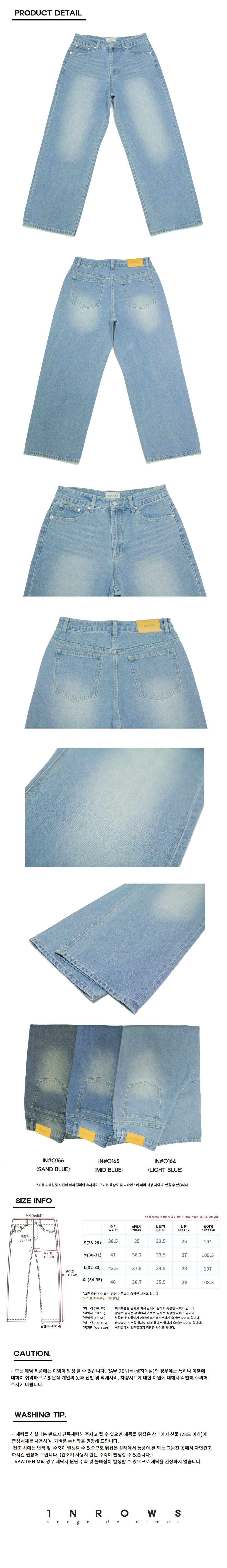 시에나 컷팅 미드 블루 워싱 롤업 와이드