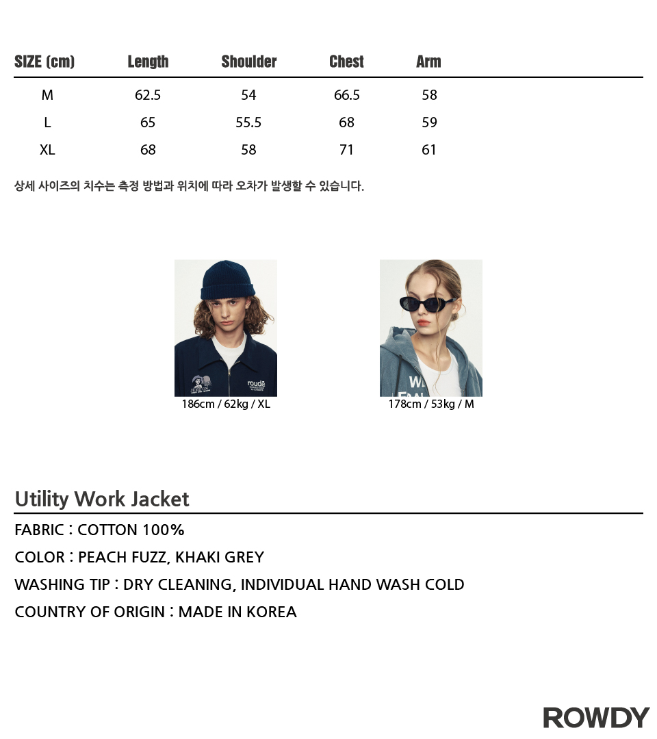 - 남성모델 : 186 / 62 XL사이즈 착용