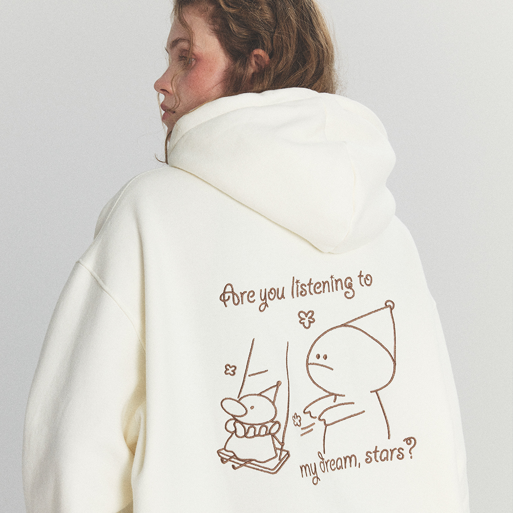 섬세한 수패턴으로 제작한 멋스러운 실루엣의 오버핏 후디