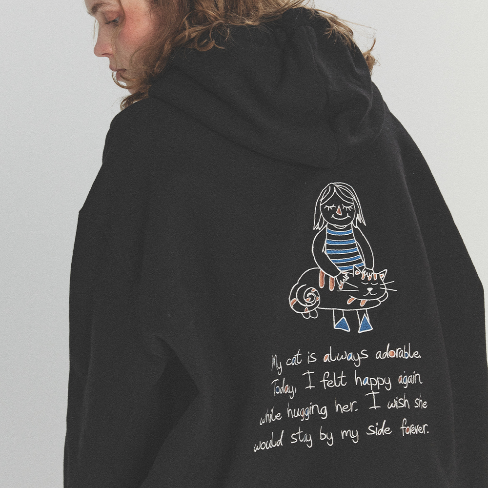 RIDING BIKE CAT 오버핏 후드 티셔츠 (블랙)