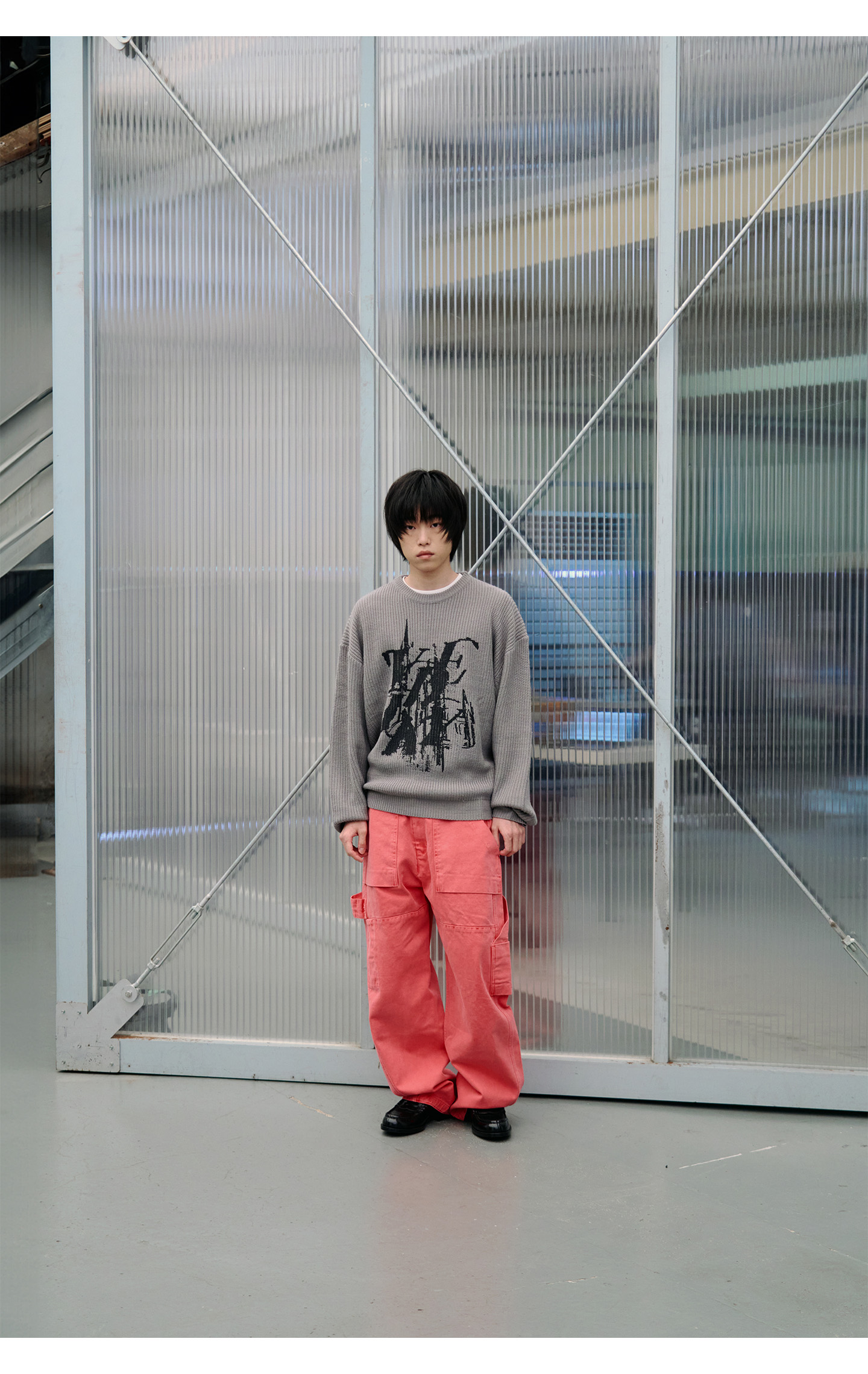 Two-Tone Skeleton Bones Round Neck Sweater_OLIVE