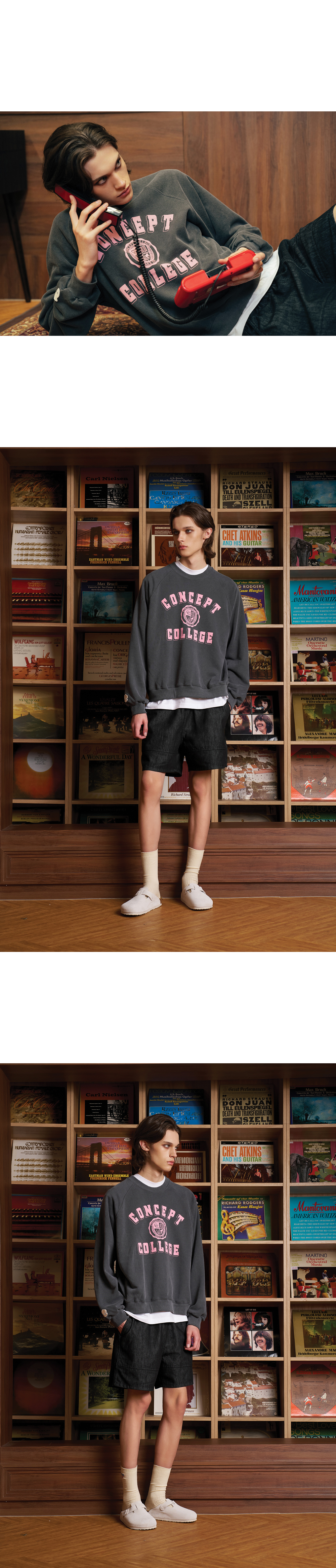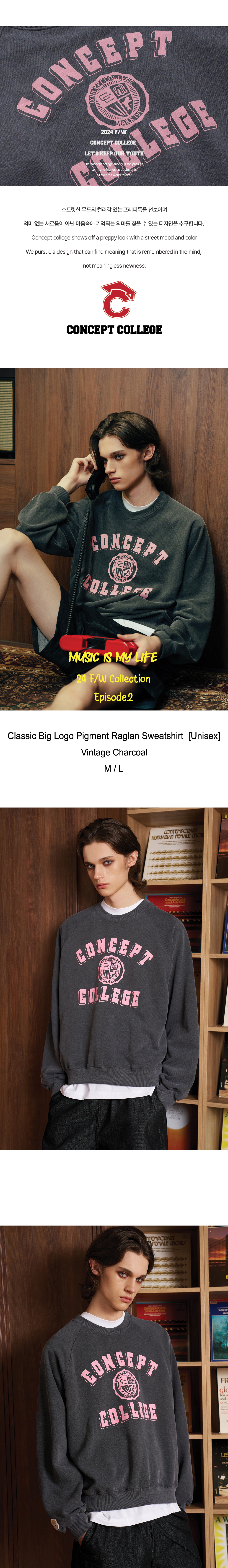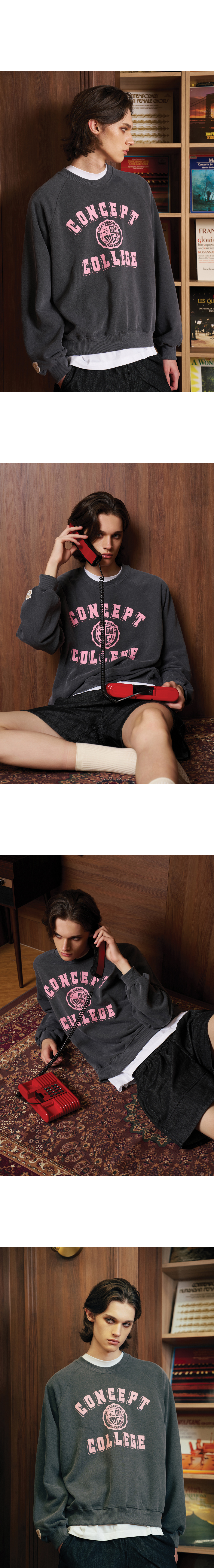 클래식 빅 로고 피그먼트 래글런 스웨트셔츠_빈티지차콜 남녀공용