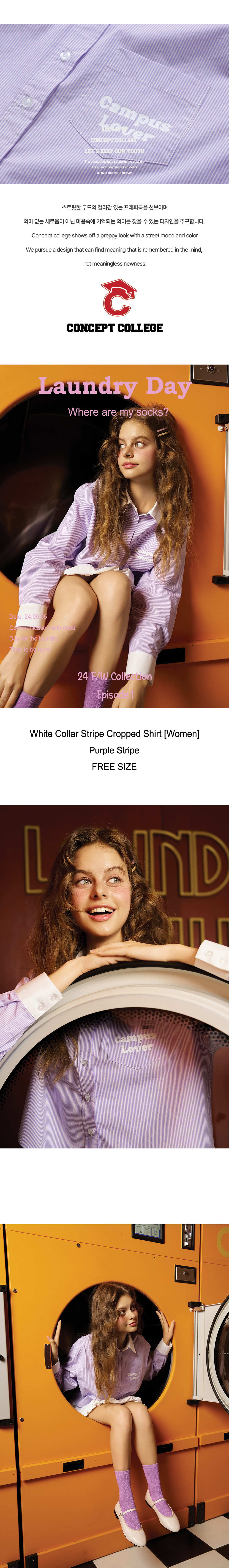 화이트 카라 스트라이프 크롭 셔츠_퍼플 여성용