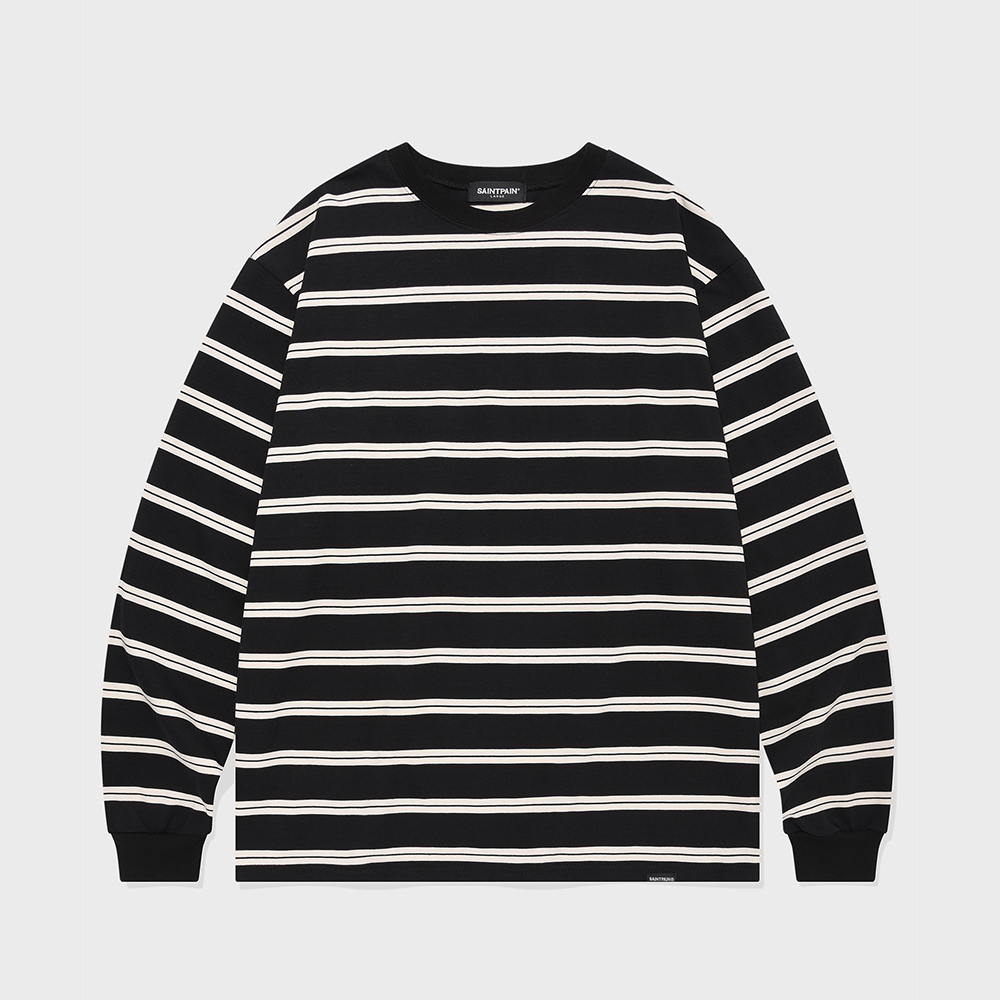 베러체인 스트라이프 레글런 롱슬리브 블랙
