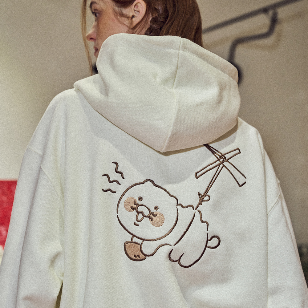 STAR CAT 오버핏 후드 티셔츠[크림]