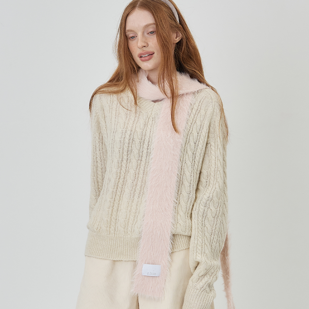 유니크한 스트라이프 디자인의 타이 니트 머플러