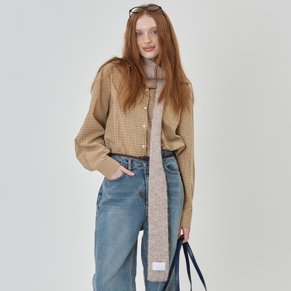 유니크한 스트라이프 디자인의 타이 니트 머플러