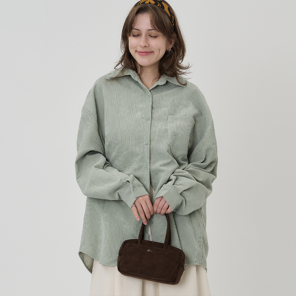 프릴 디테일로 완성한 도트 패턴의 덤플링 백