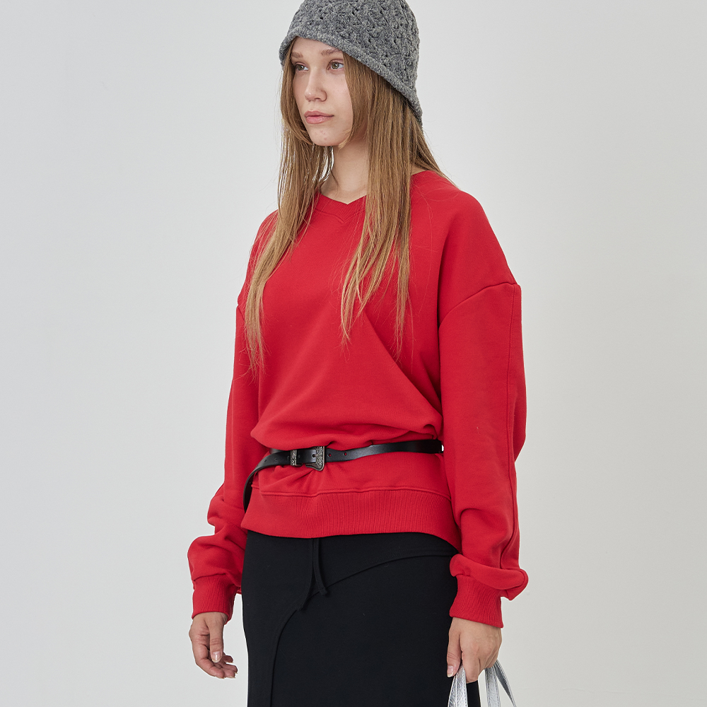 포지티브 자수 레글런 스웨트셔츠 멜란지화이트