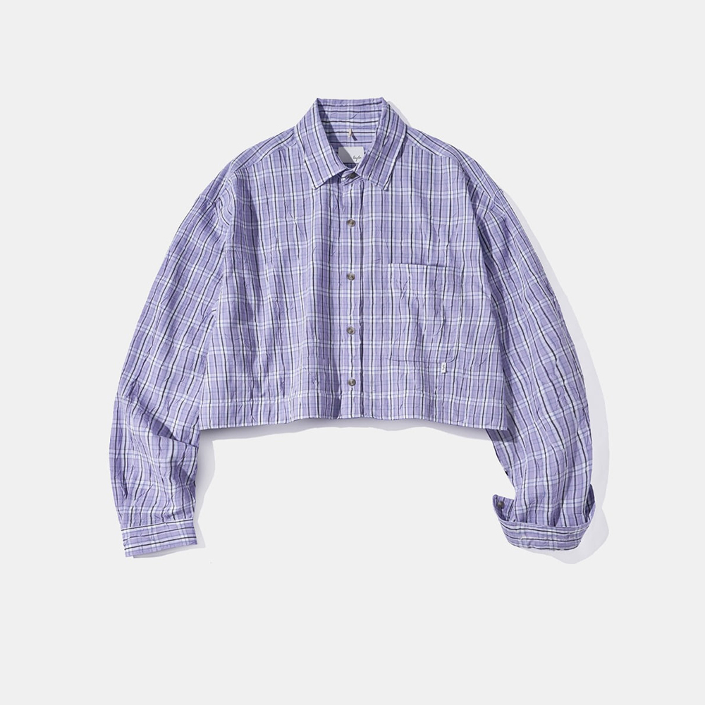 Crop Detachable Crease Check Shirt S167 Purple Black