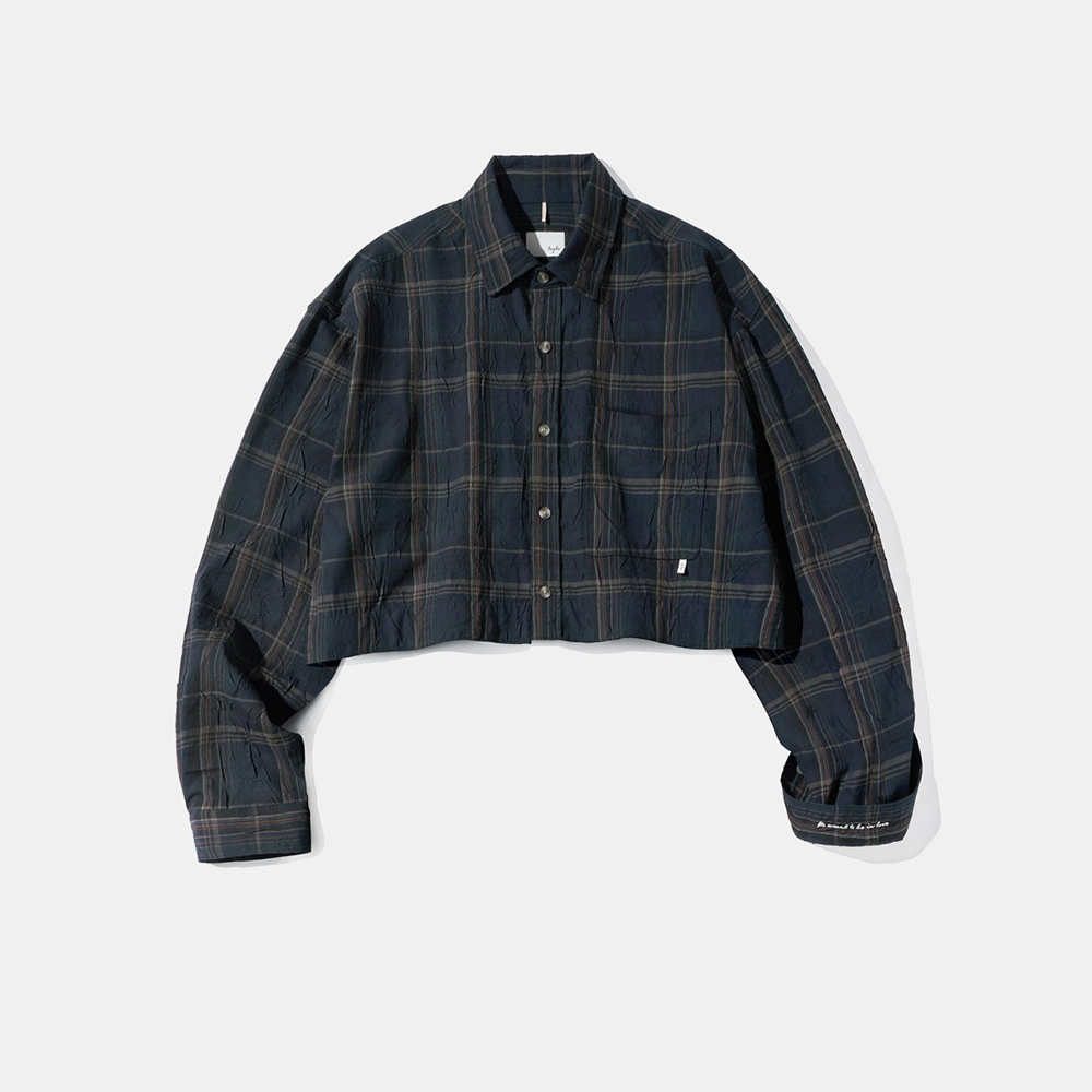 Crop Detachable Crease Check Shirt S167 Faded Navy