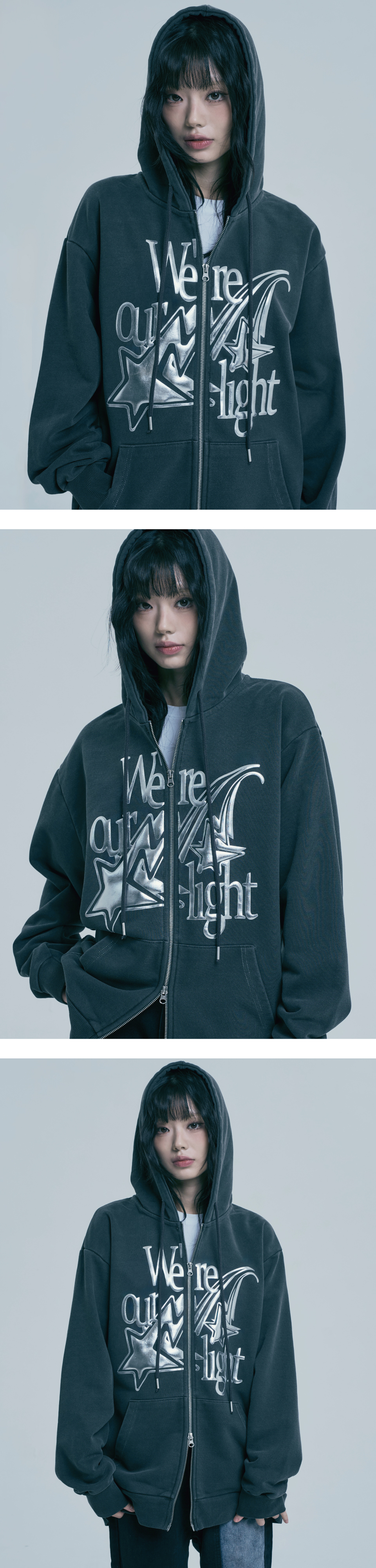 Applique STGM Pigment Washed Oversized Zip-up Hoodie Charcoal