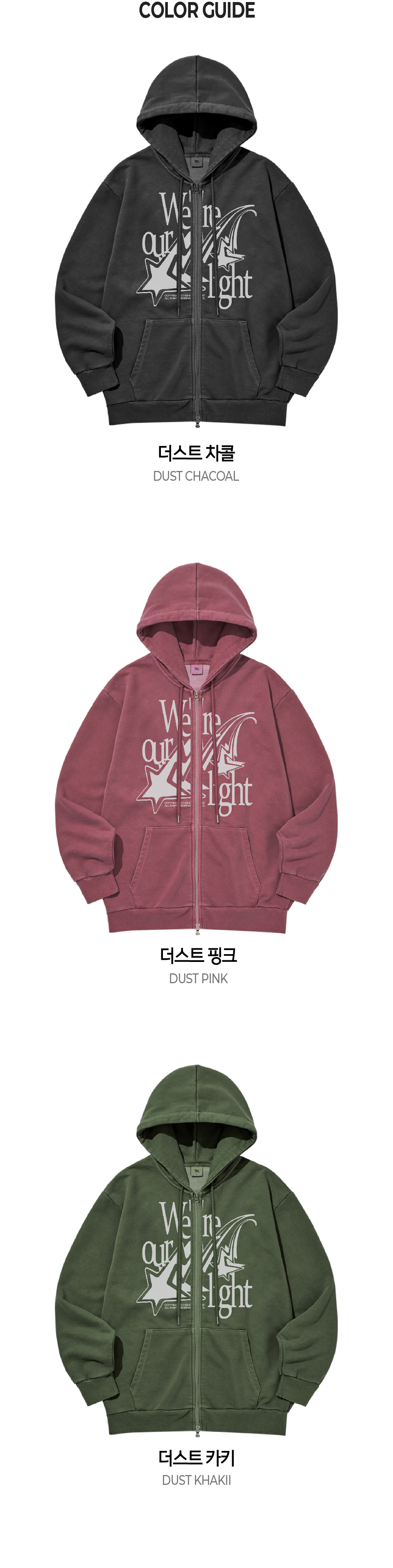 APPLIQUE STUD DYED HOOD ZIP-UP_CHAROAL
