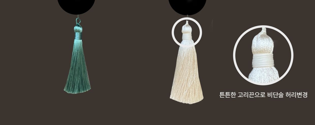 기존 비단술 허리부분 내구성을 강화하여 외부 자극에도 쉽게 풀리지 않으며, 비단술의 풍성함과 길이감은 더하여 더욱 고급스럽게 바뀌었습니다.