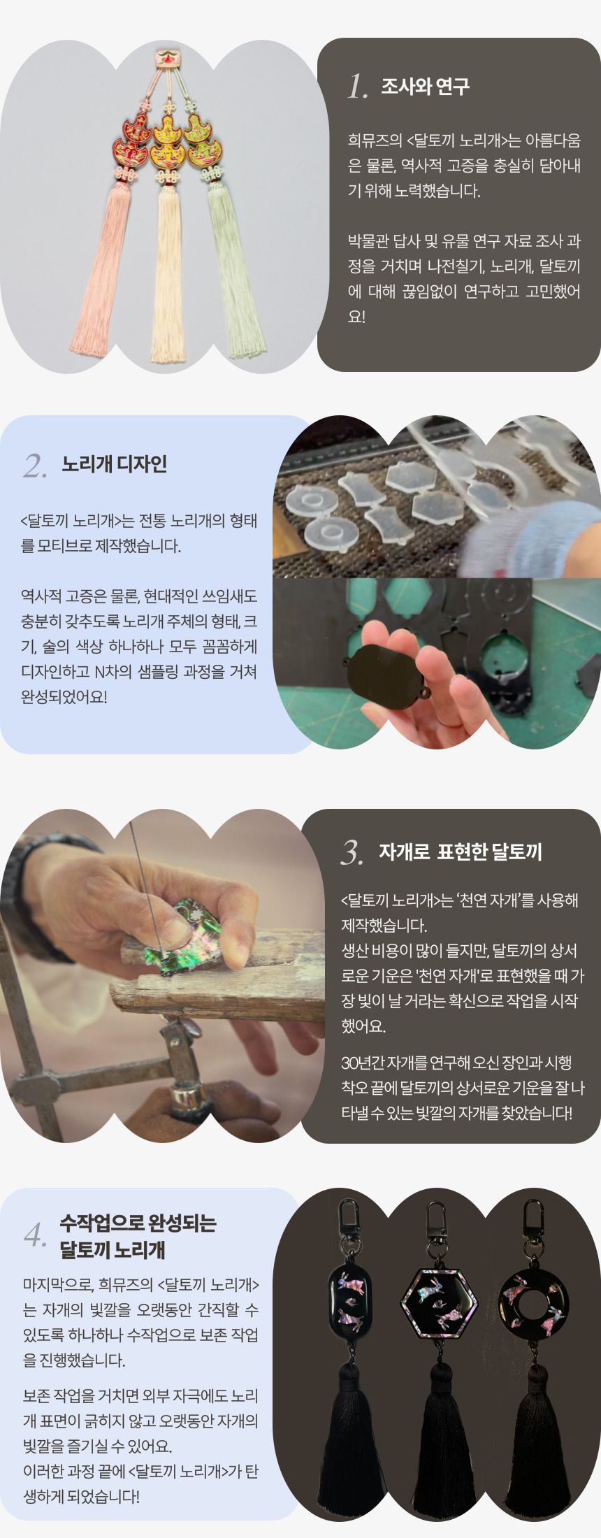 희뮤즈는 선조들이 노리개에 담아 전한 귀한 마음을 자개를 품은 <달토끼 노리개>에 담아 전하고자 합니다.