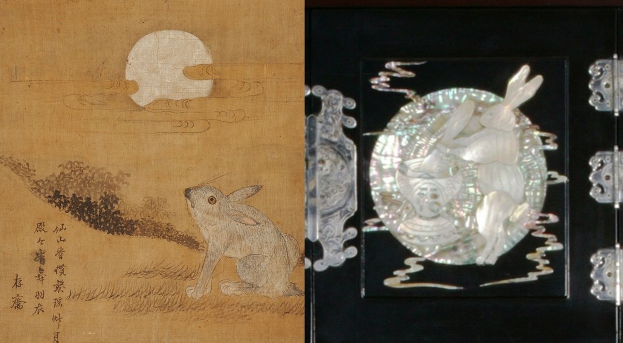 왼쪽: <둥근 달을 바라보는 토끼, 출처: 국립중앙박물관> 오른쪽: <자개 삼층농(三層籠), 출처:국립민속박물관>