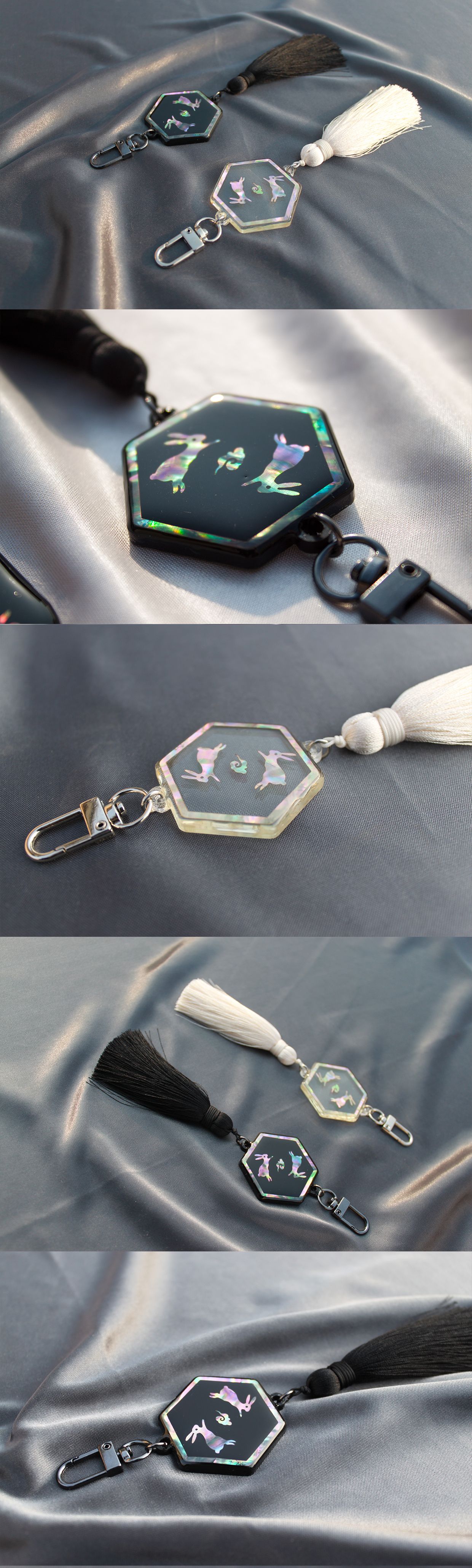 희뮤즈의 달토끼 노리개는 자개 모양 스티커나 인쇄한 것이 아닌 진짜 자개를 절삭하여 만들었습니다.