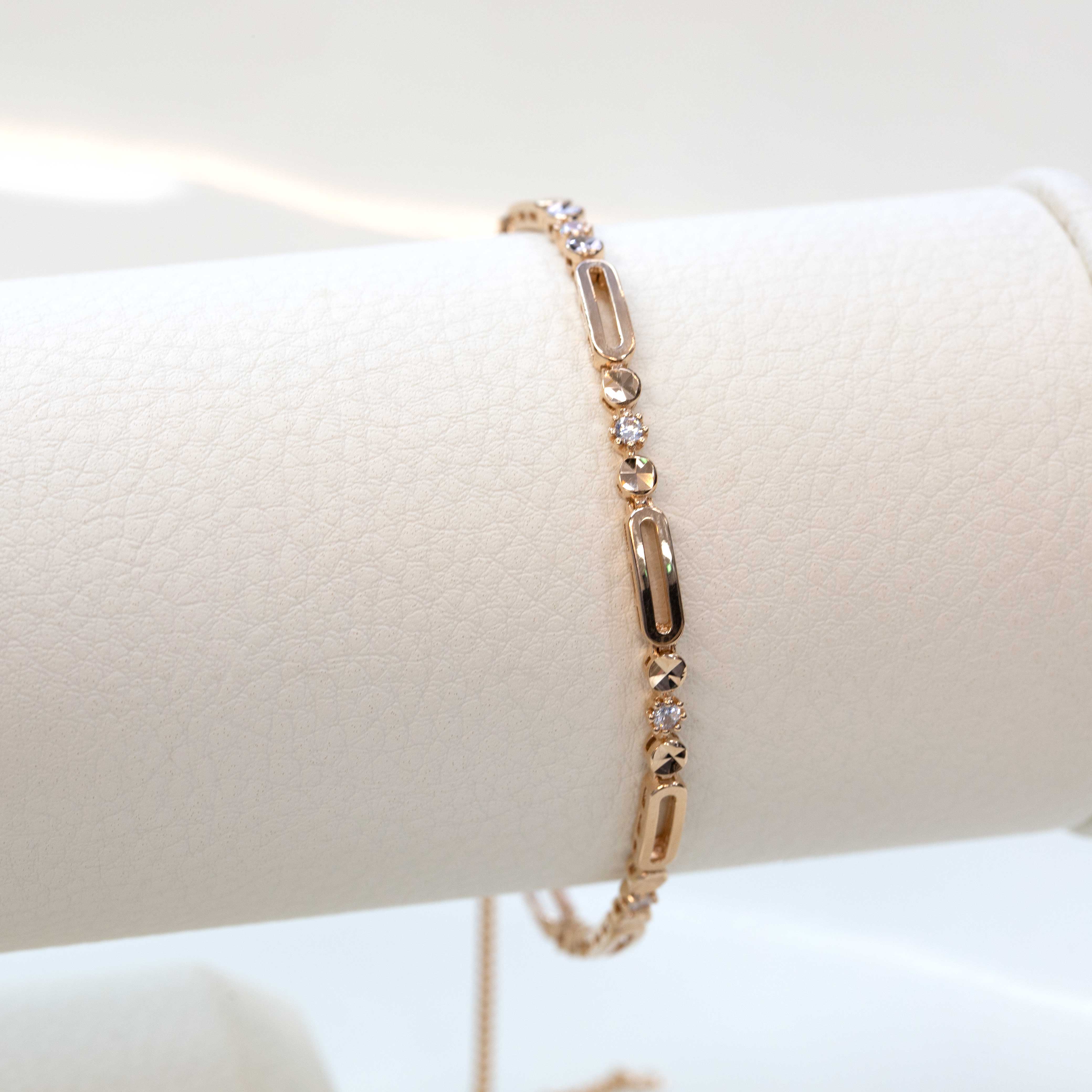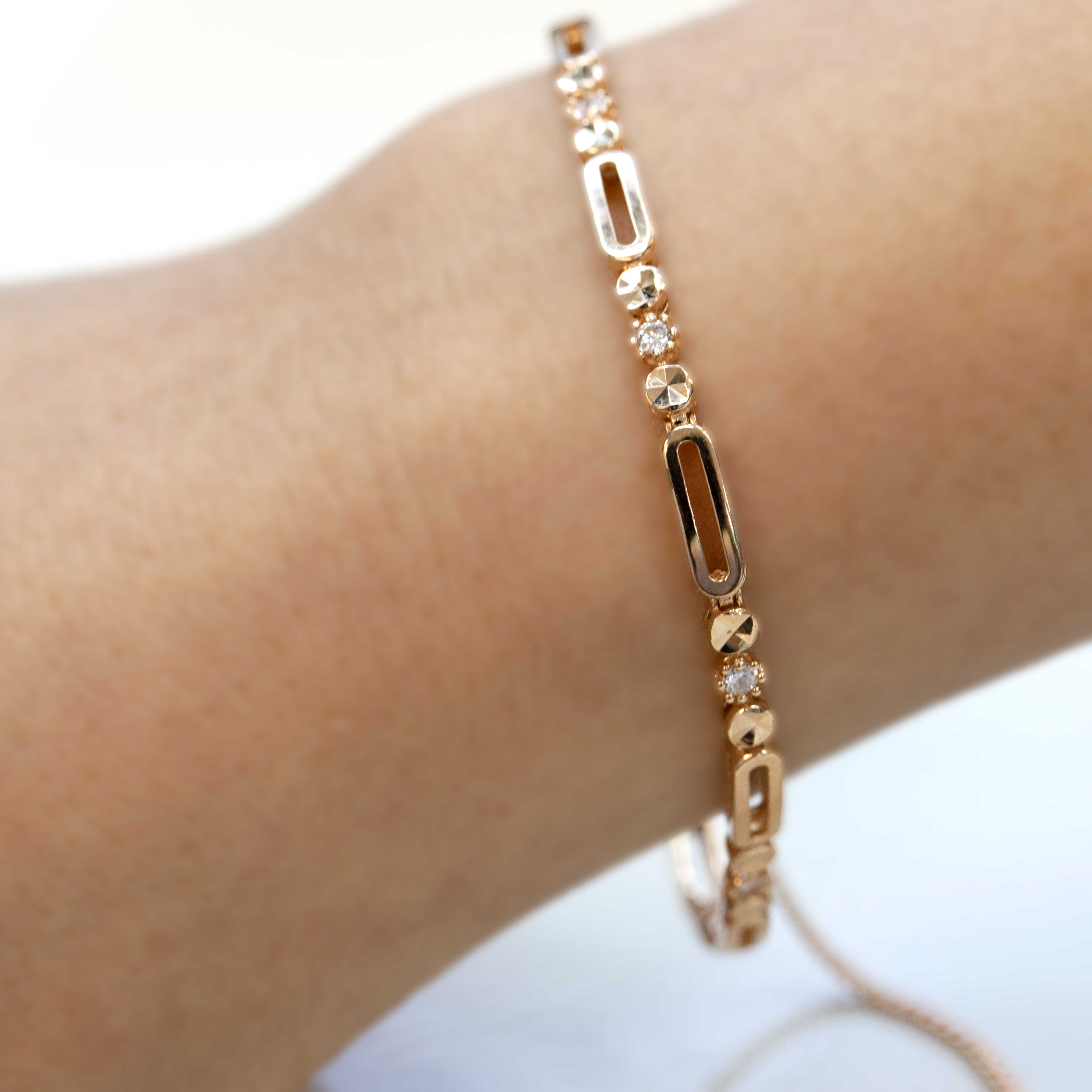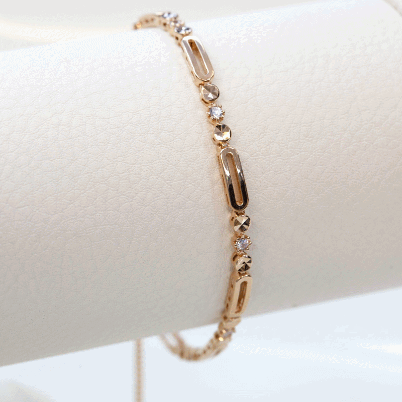 14K 반짝 큐 마디 팔찌 심플 데일리 골드 레이어드 핑크 중량감 화이트 팔찌