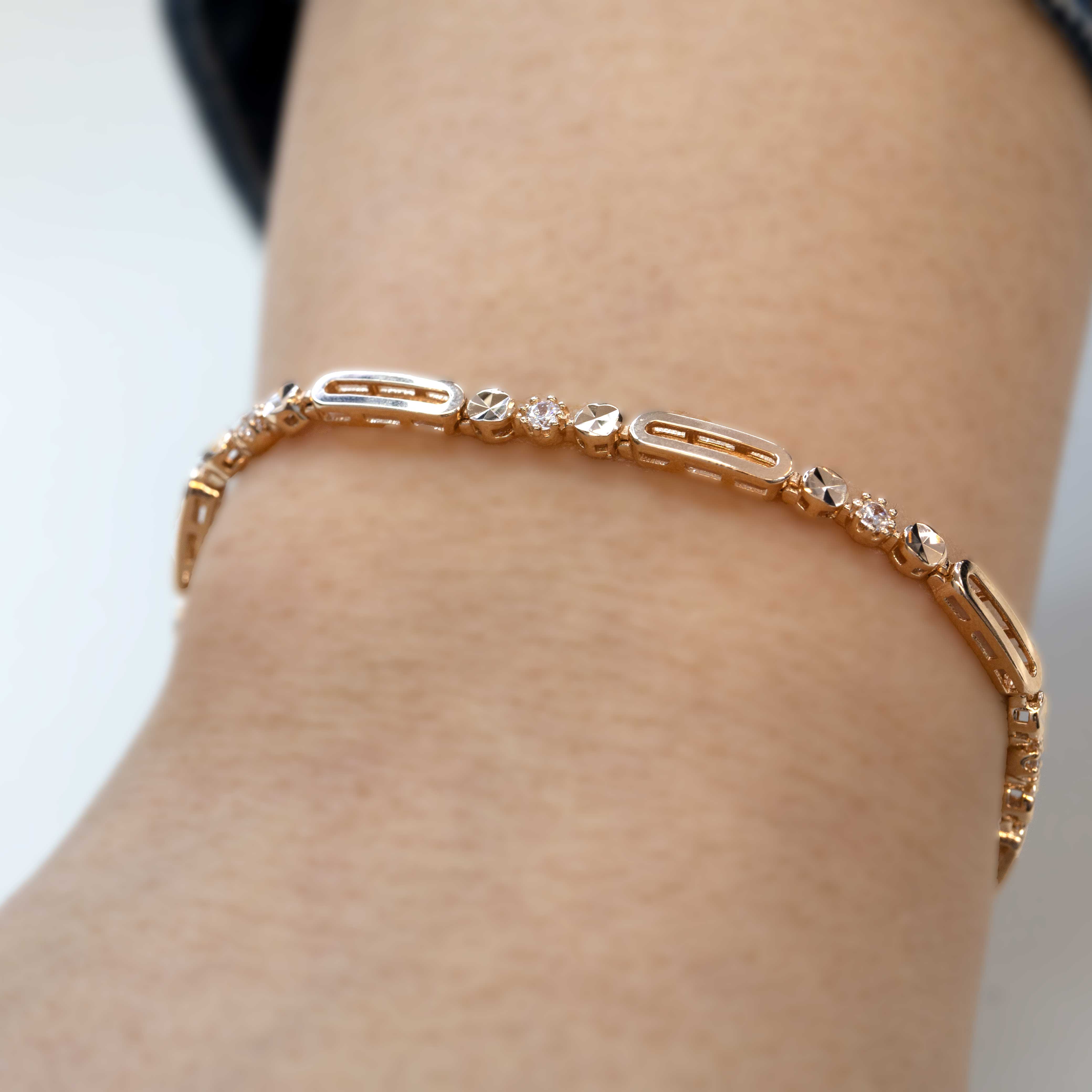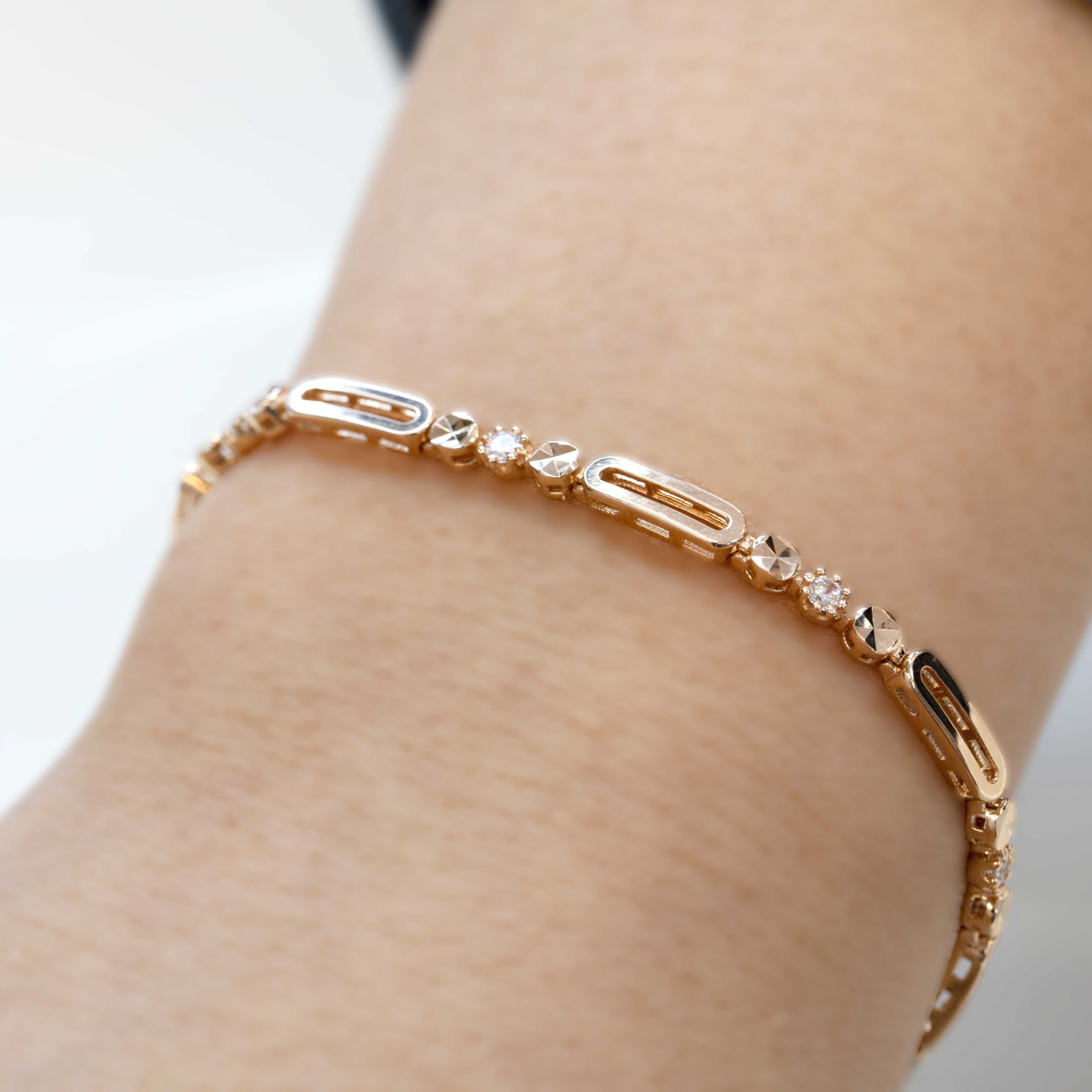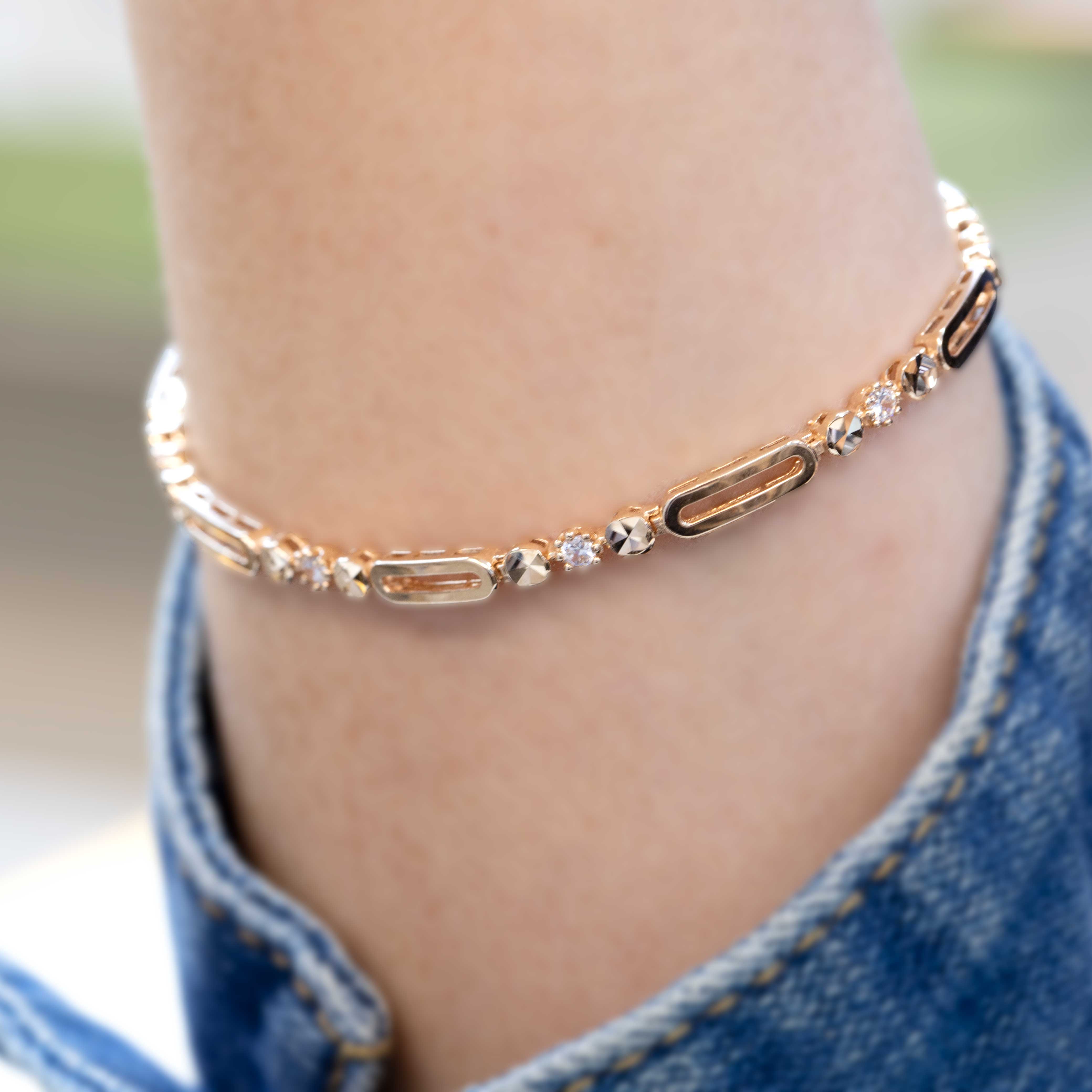 14K 반짝 큐 마디 팔찌 심플 데일리 골드 레이어드 핑크 중량감 화이트 팔찌