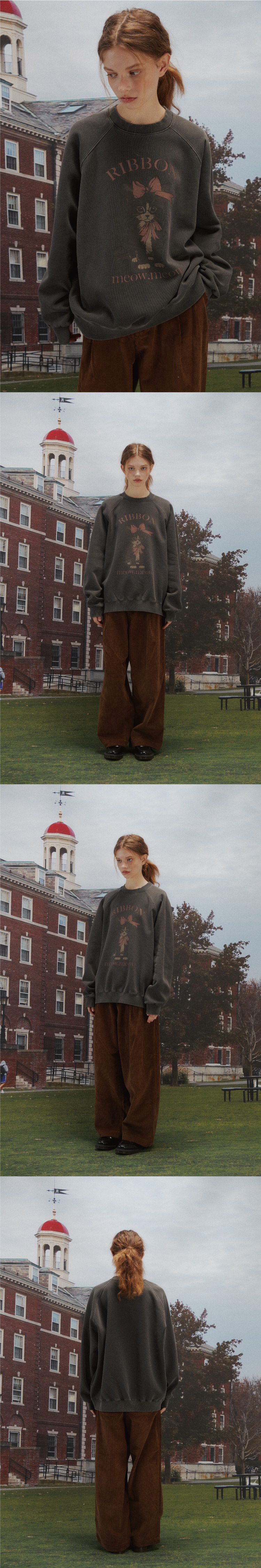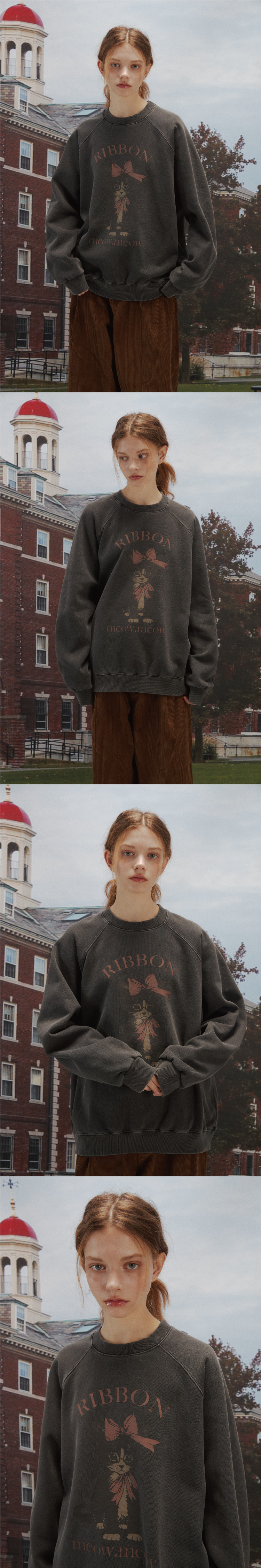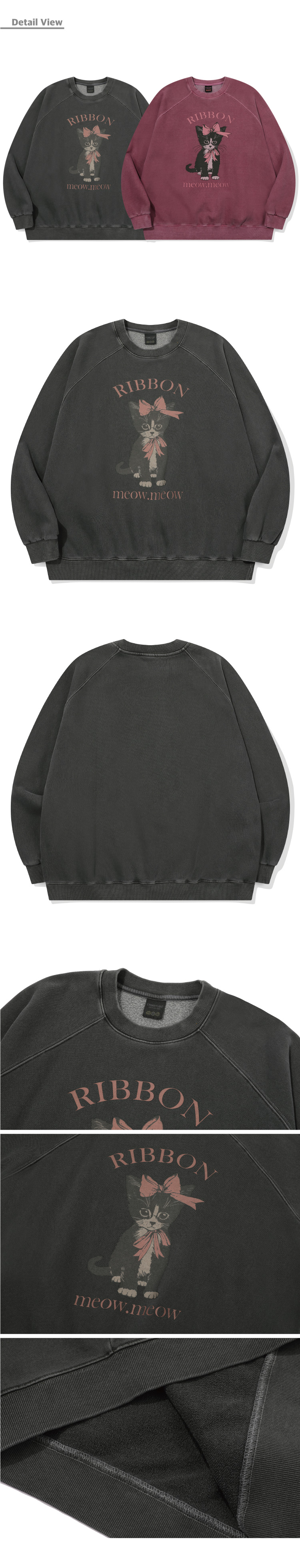 RIBBON CAT 레글런 피그먼트 맨투맨 더스티핑크