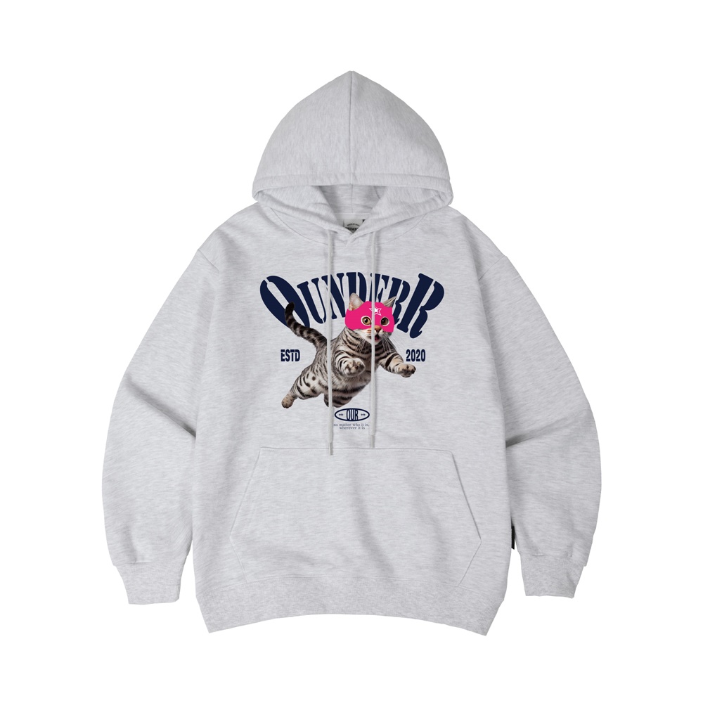 RIDING BIKE CAT 오버핏 후드 티셔츠 (멜란지 그레이)